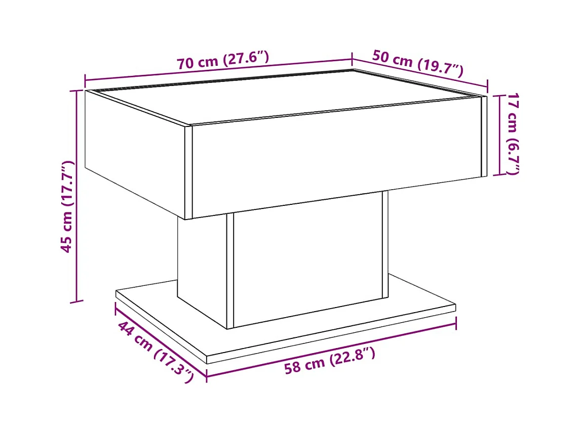 Table basse avec LED gris béton 70x50x45 cm bois d'ingénierie
