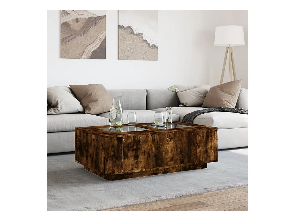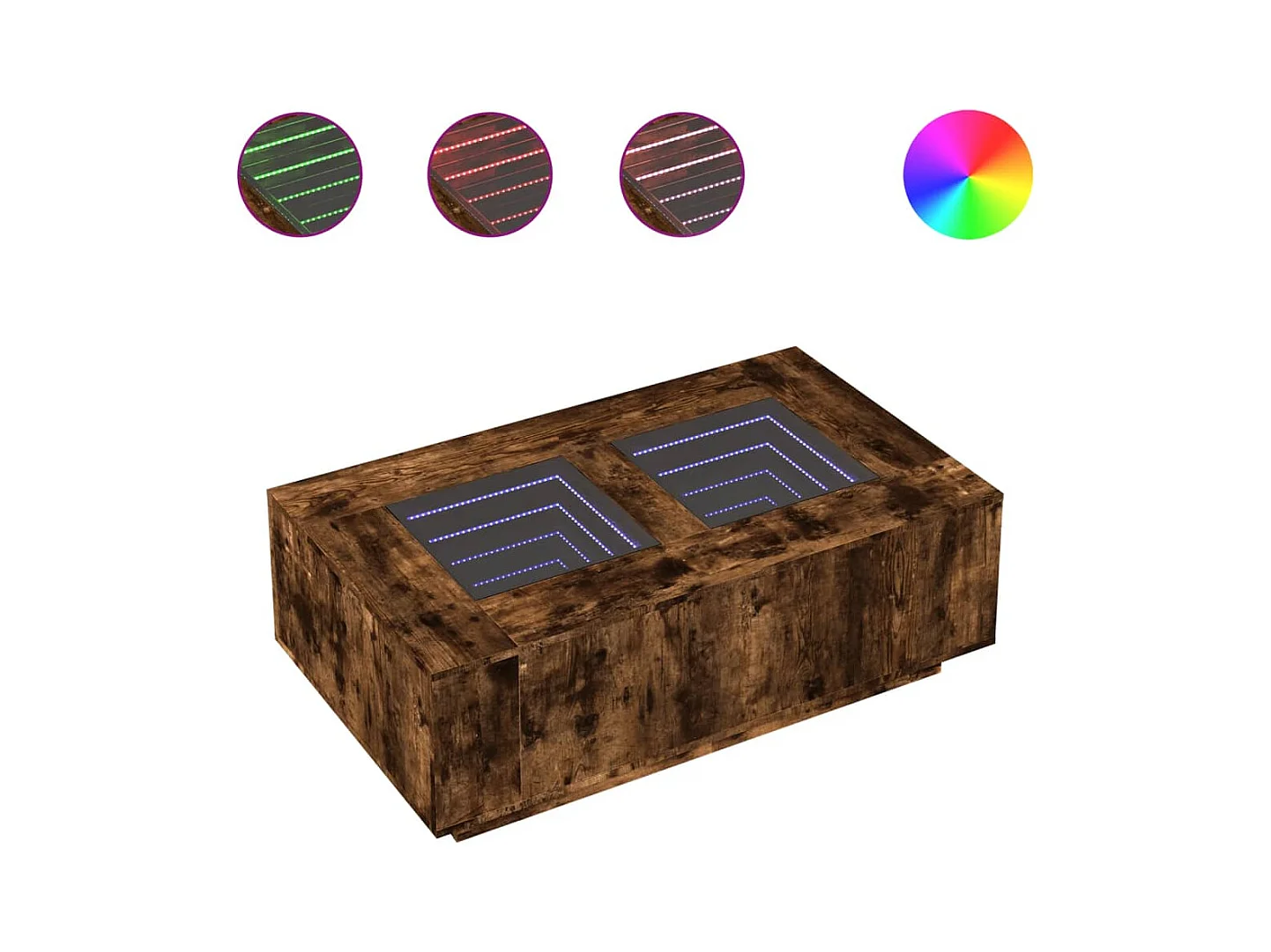 Table basse avec LED infini chêne fumé 116x69x40 cm