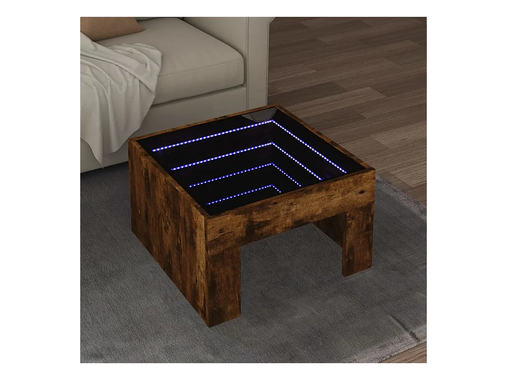 Table basse avec LED Infinity chêne fumé 50x50x38 cm
