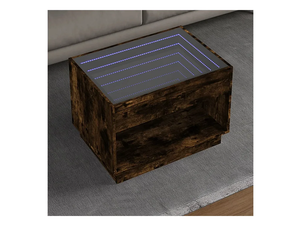Table basse avec LED infini chêne fumé 70x50x50 cm