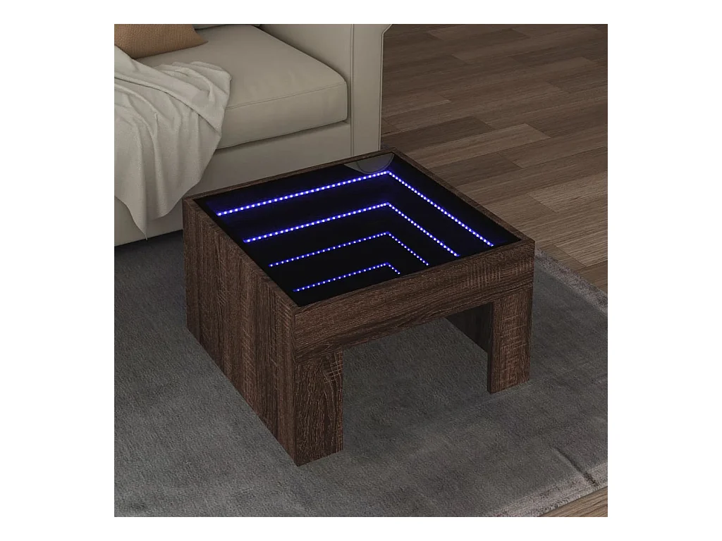 Table basse avec LED infini chêne marron 50x50x30 cm