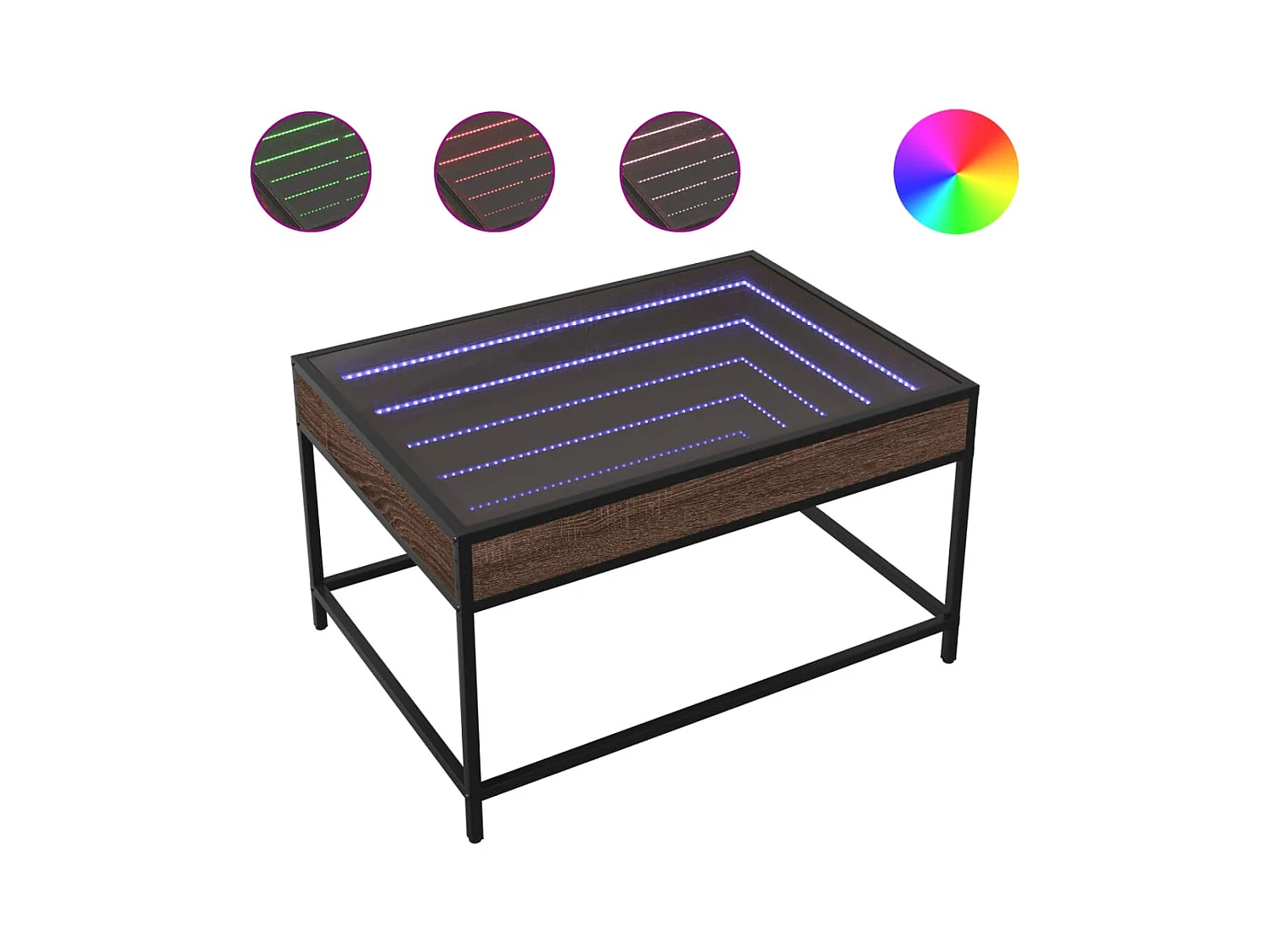 Table basse avec LED infini chêne marron 70x50x38 cm