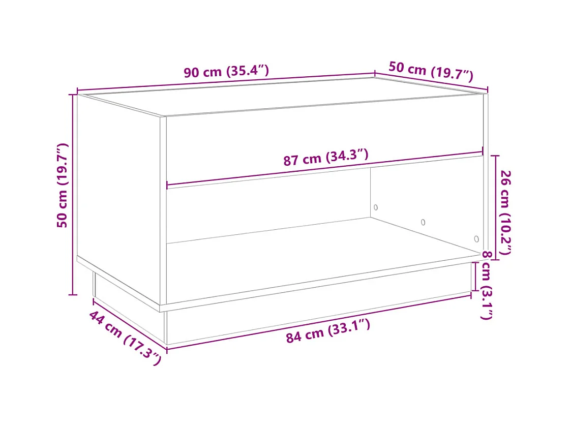 Table basse sonoma gris 90x50x40 cm bois d'ingénierie