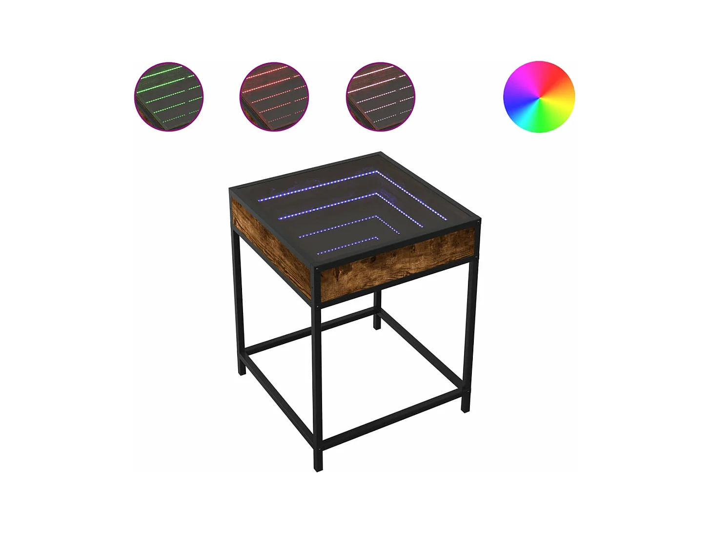 Table basse avec LED Infinity chêne fumé 40x40x51 cm