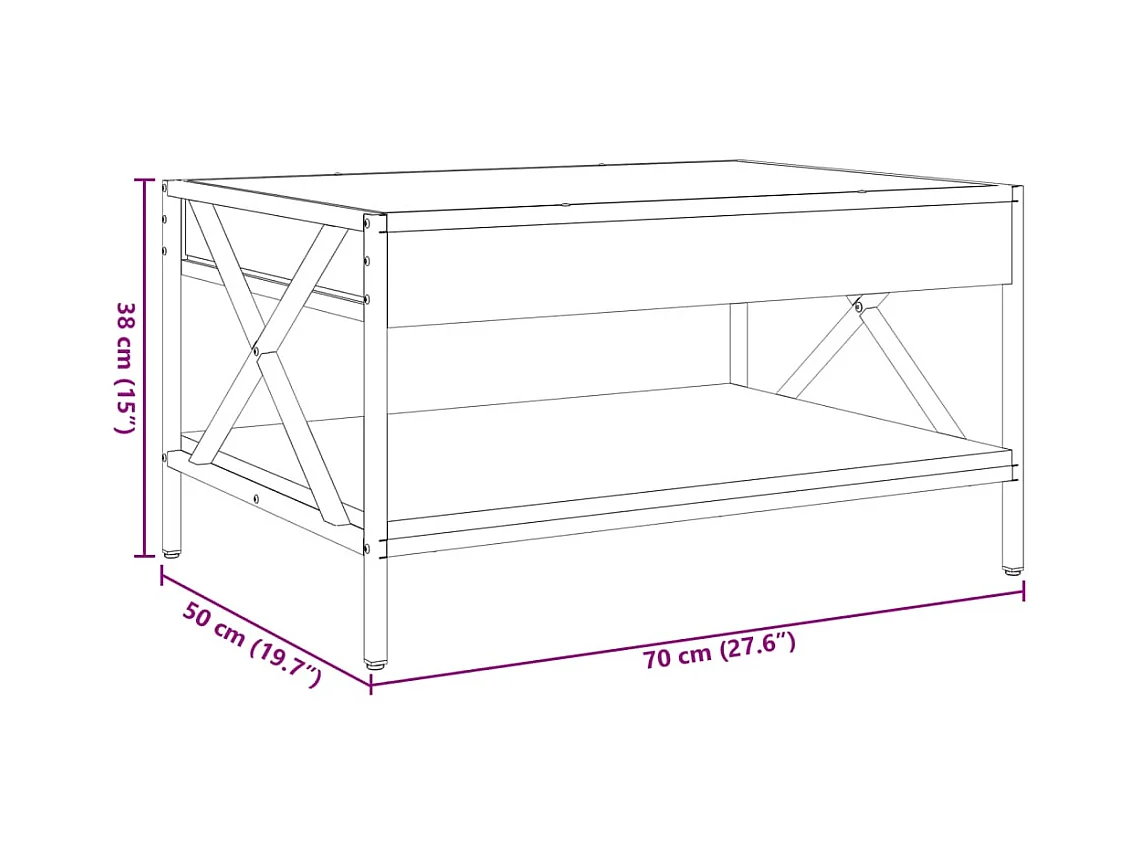 Table basse chêne marron 100x50x50cm bois d'ingénierie et métal