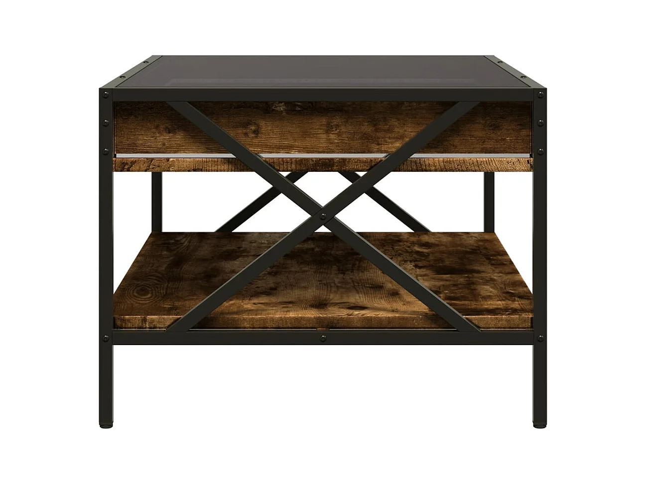 Table basse chêne artisanal 60x60x31,5 cm bois d'ingénierie