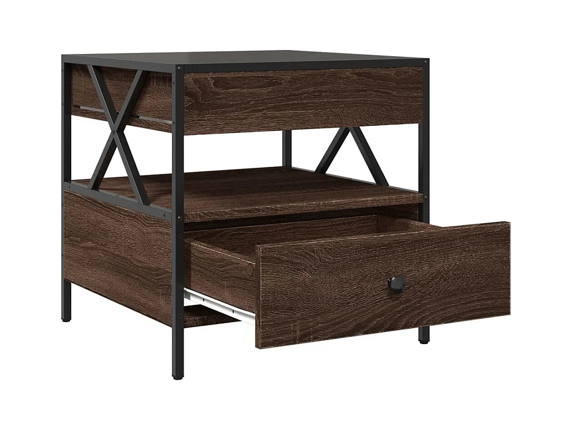 Table basse et dessus en verre chêne marron 50x50x45 cm acier