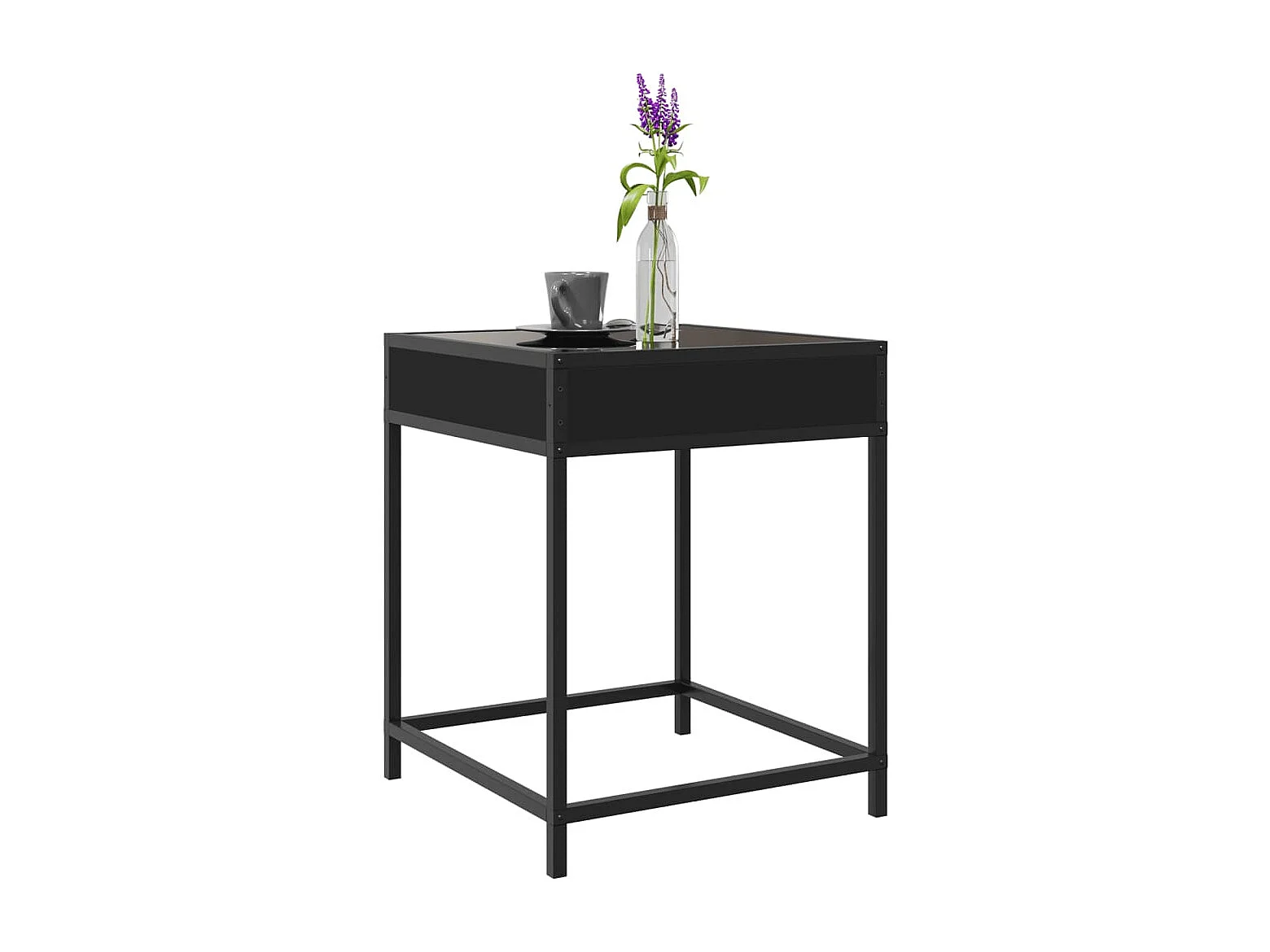 Table basse avec dessus en verre noir 40x40x40 cm acier