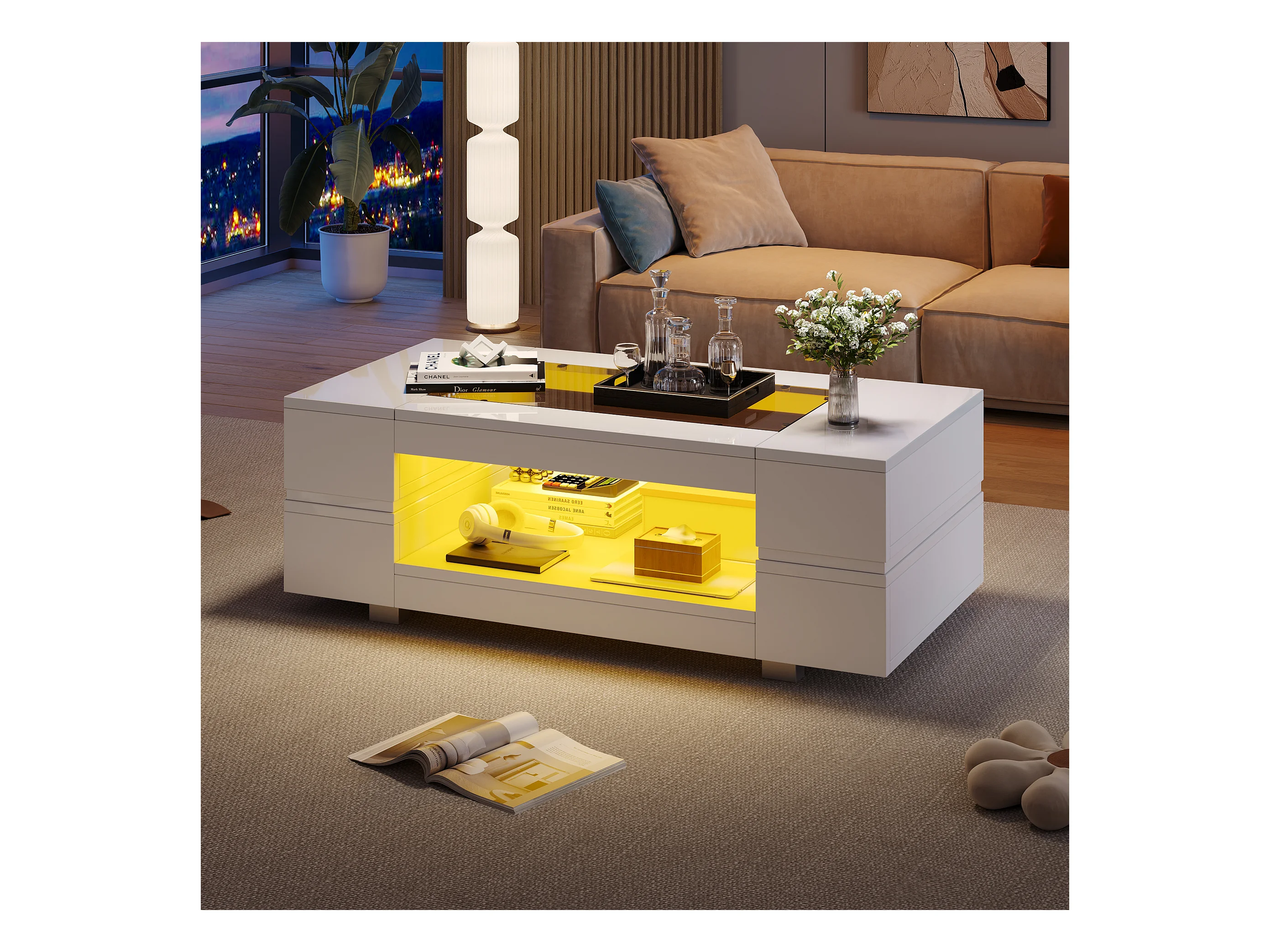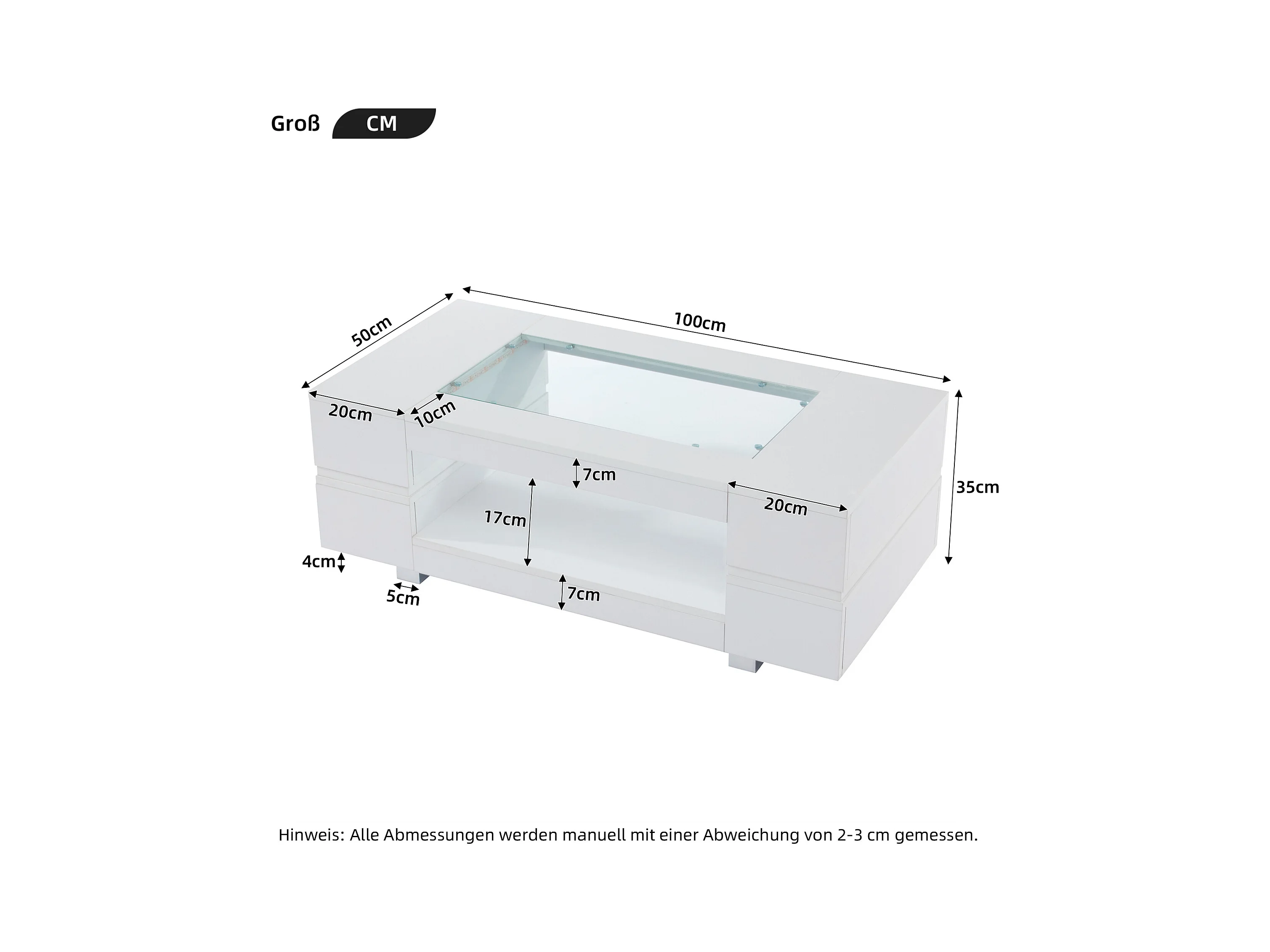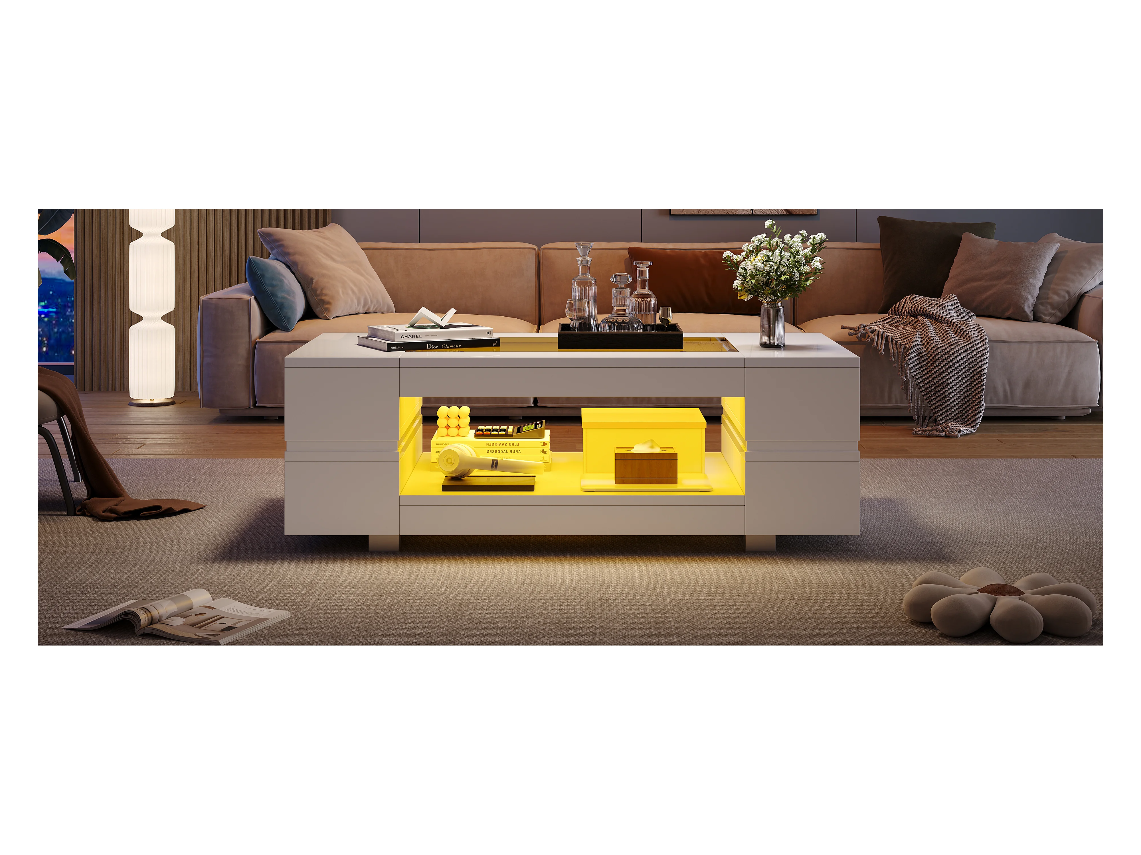 Table basse avec Leds - 100 x 50 x 35 cm - Table à double couche avec Bluetooth - Aggloméré + verre trempé - blanc