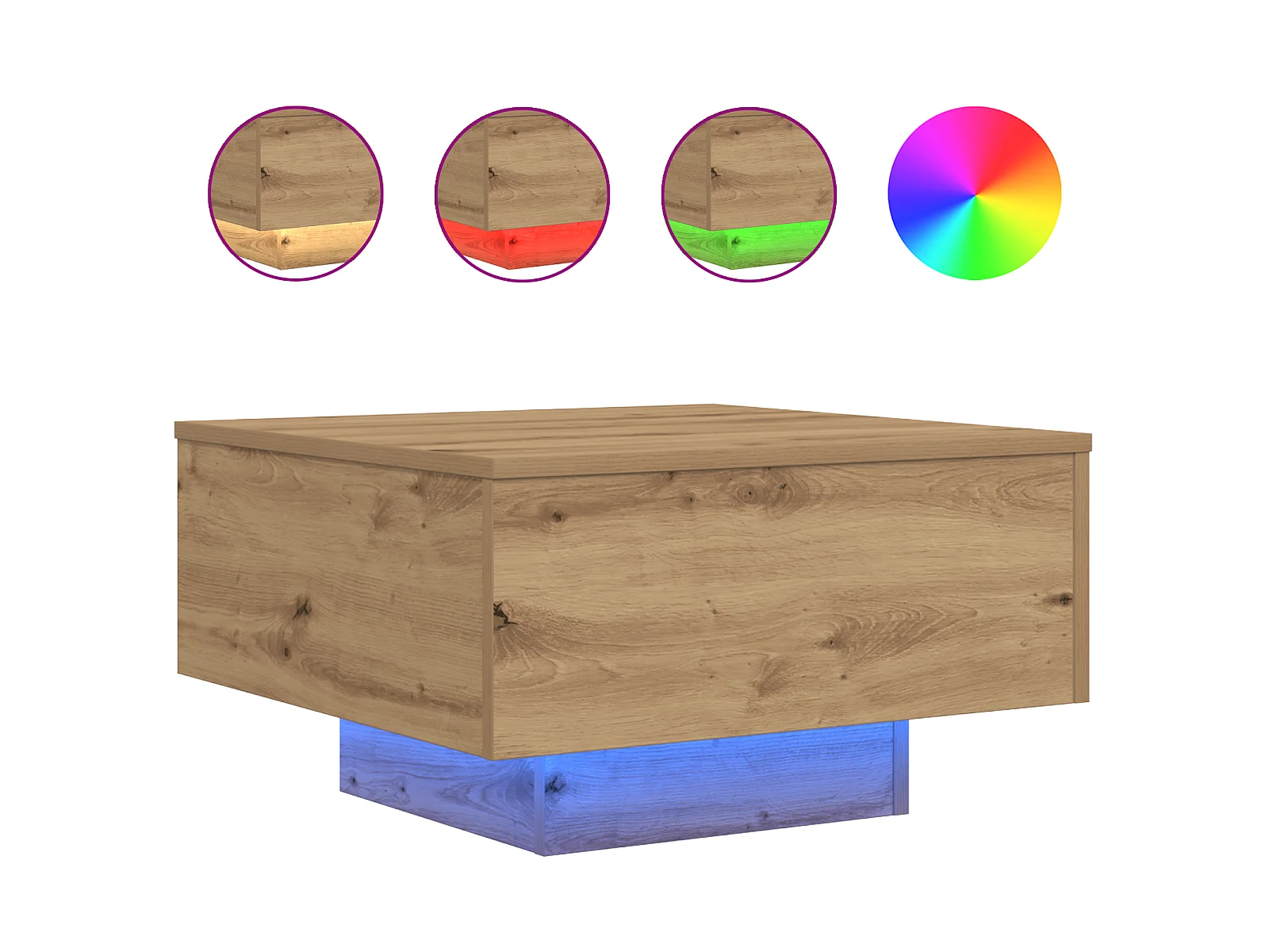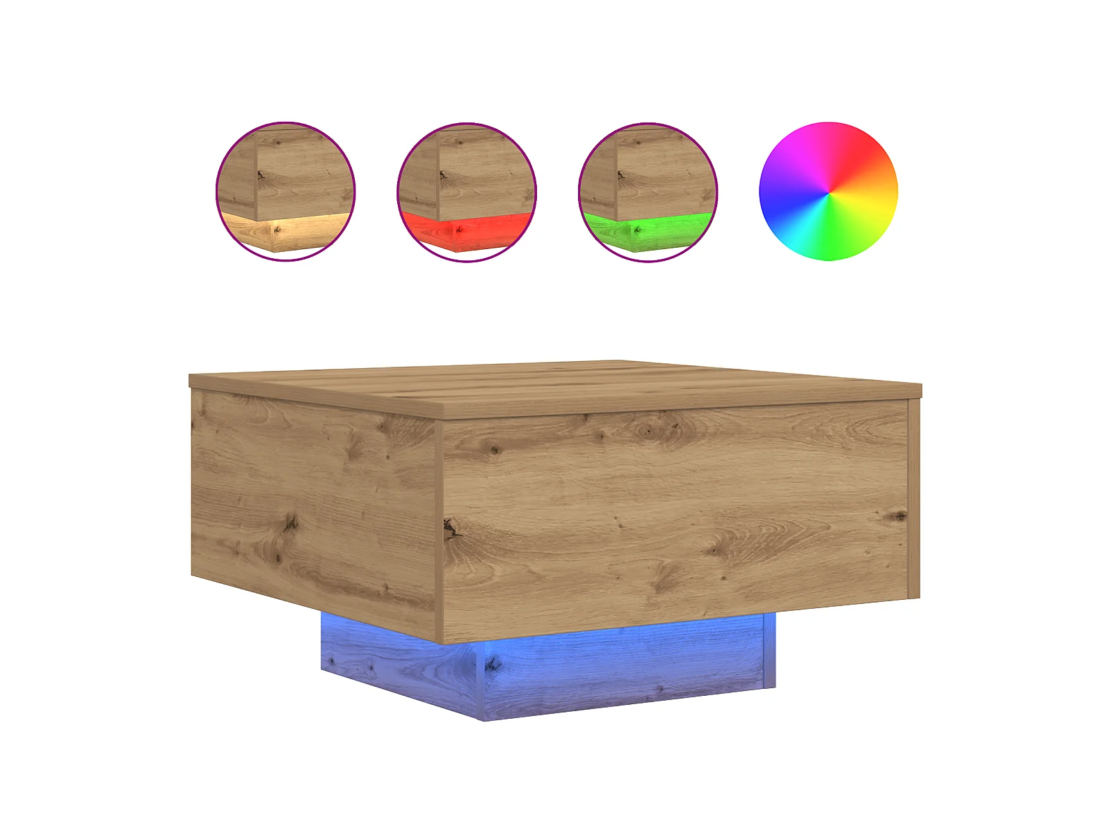 Table basse avec lumières LED Chêne artisanal 55x55x31 cm