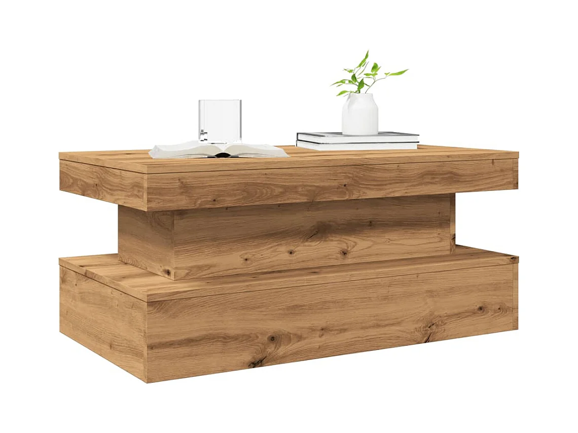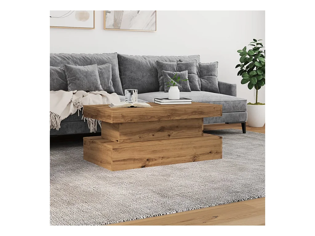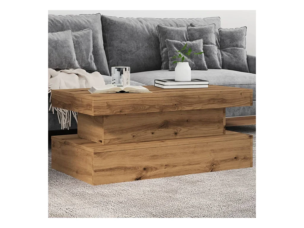 Table basse avec lumières LED chêne artisanal 90x50x40 cm