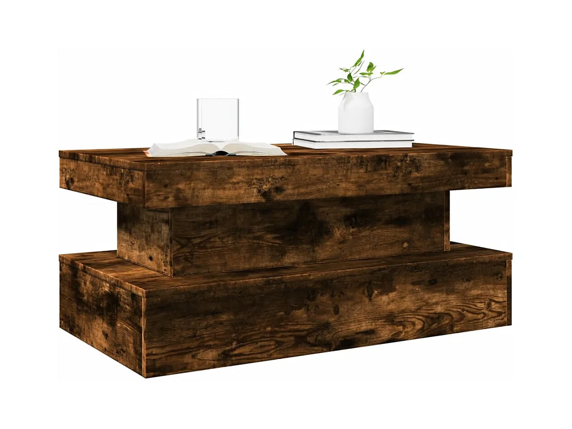 Table basse avec lumières LED chêne fumé 90x50x40 cm