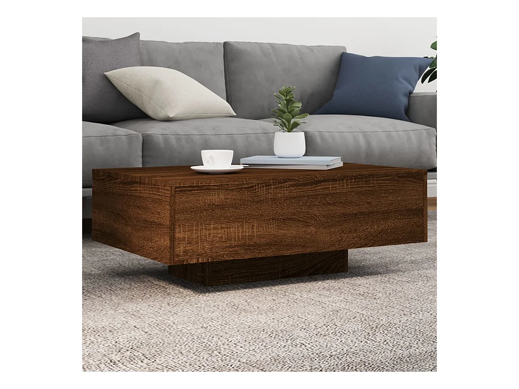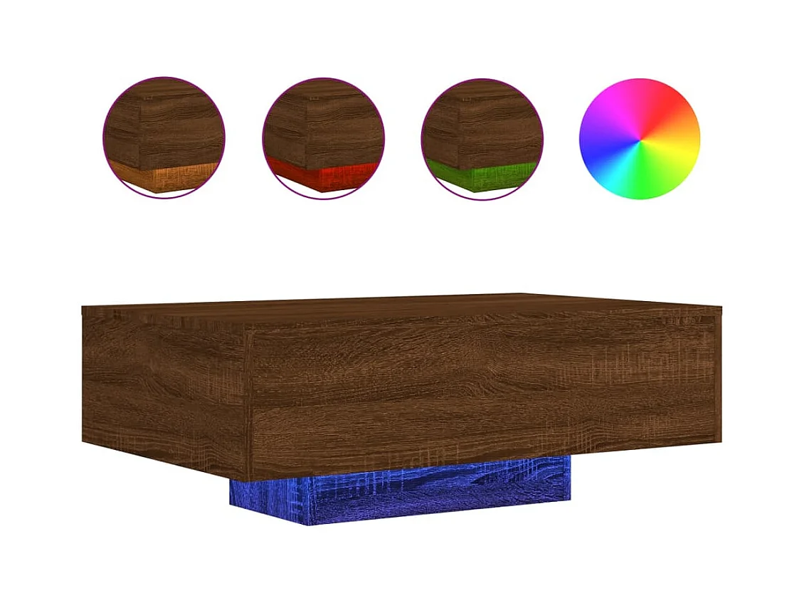 Table basse avec lumières LED chêne marron 85x55x31 cm