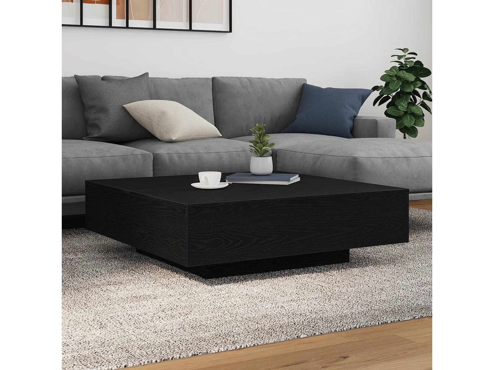 Table basse avec lumières LED Chêne noir 100x100x31 cm