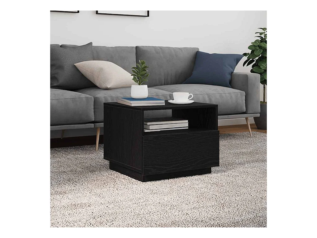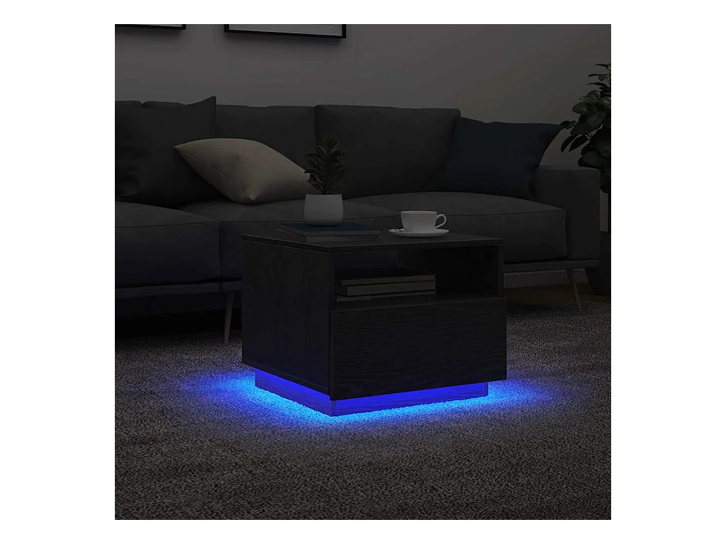 Table basse avec lumières LED chêne noir 50x50x40 cm