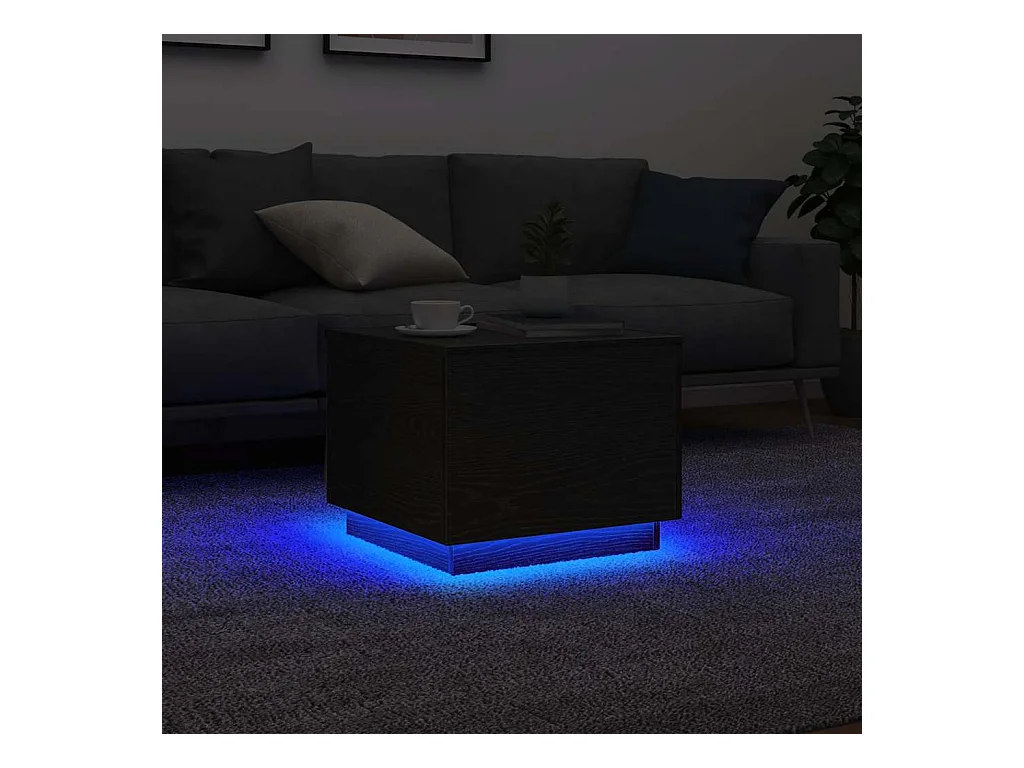 Table basse avec lumières LED chêne noir 50x50x40 cm