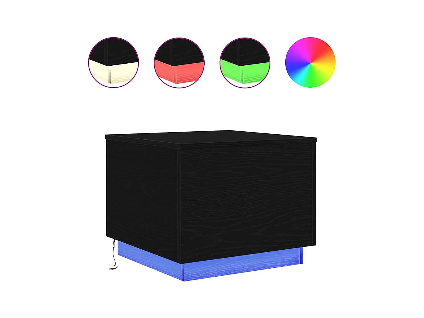 Table basse avec lumières LED noir 50x50x40 cm FR34141