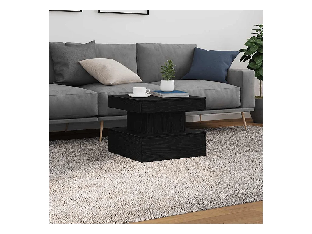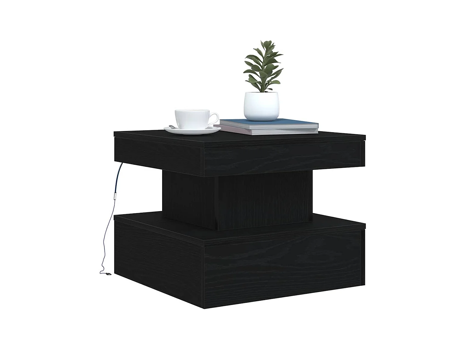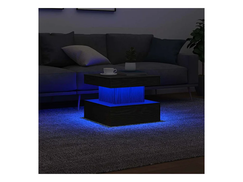 Table basse avec lumières LED chêne noir 50x50x40 cm