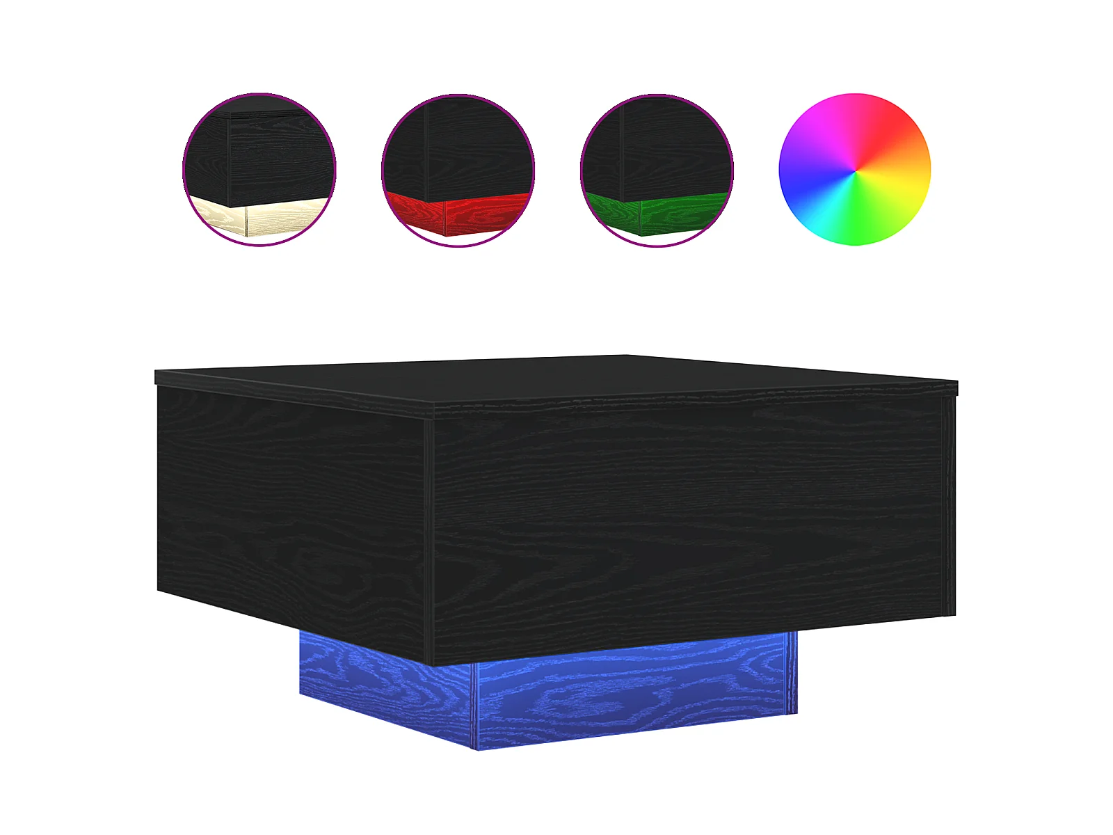 Table basse avec lumières LED Chêne noir 55x55x31 cm