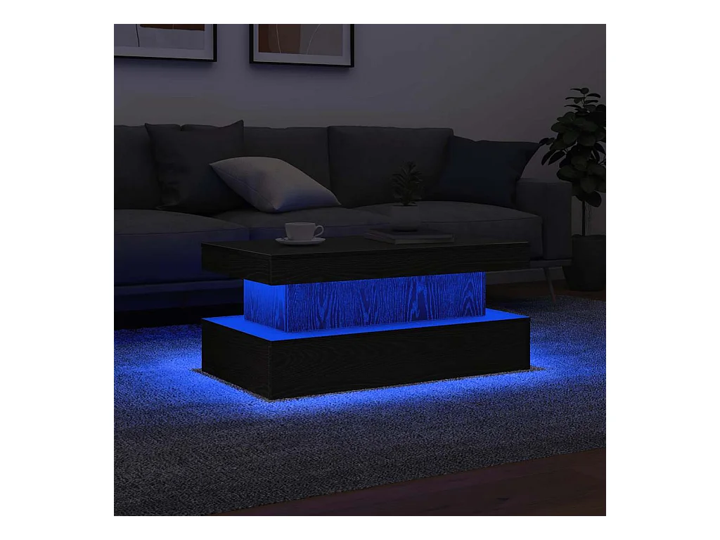Table basse avec lumières LED chêne noir 90x50x40 cm