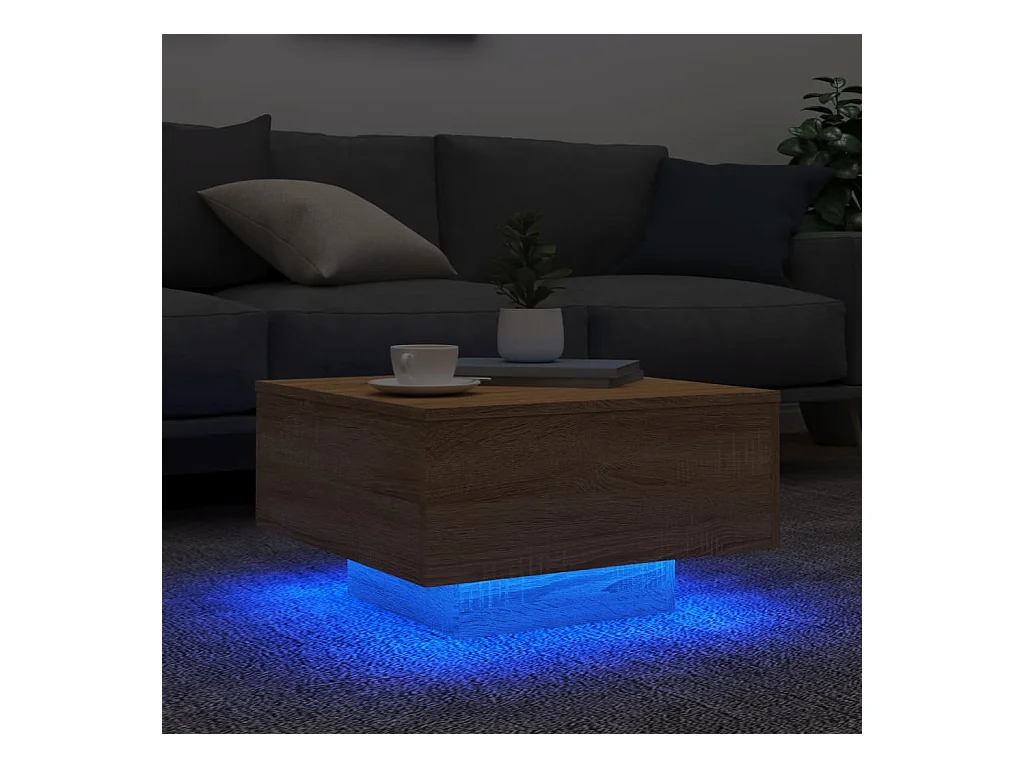 Table basse avec lumières LED chêne sonoma 55x55x31 cm