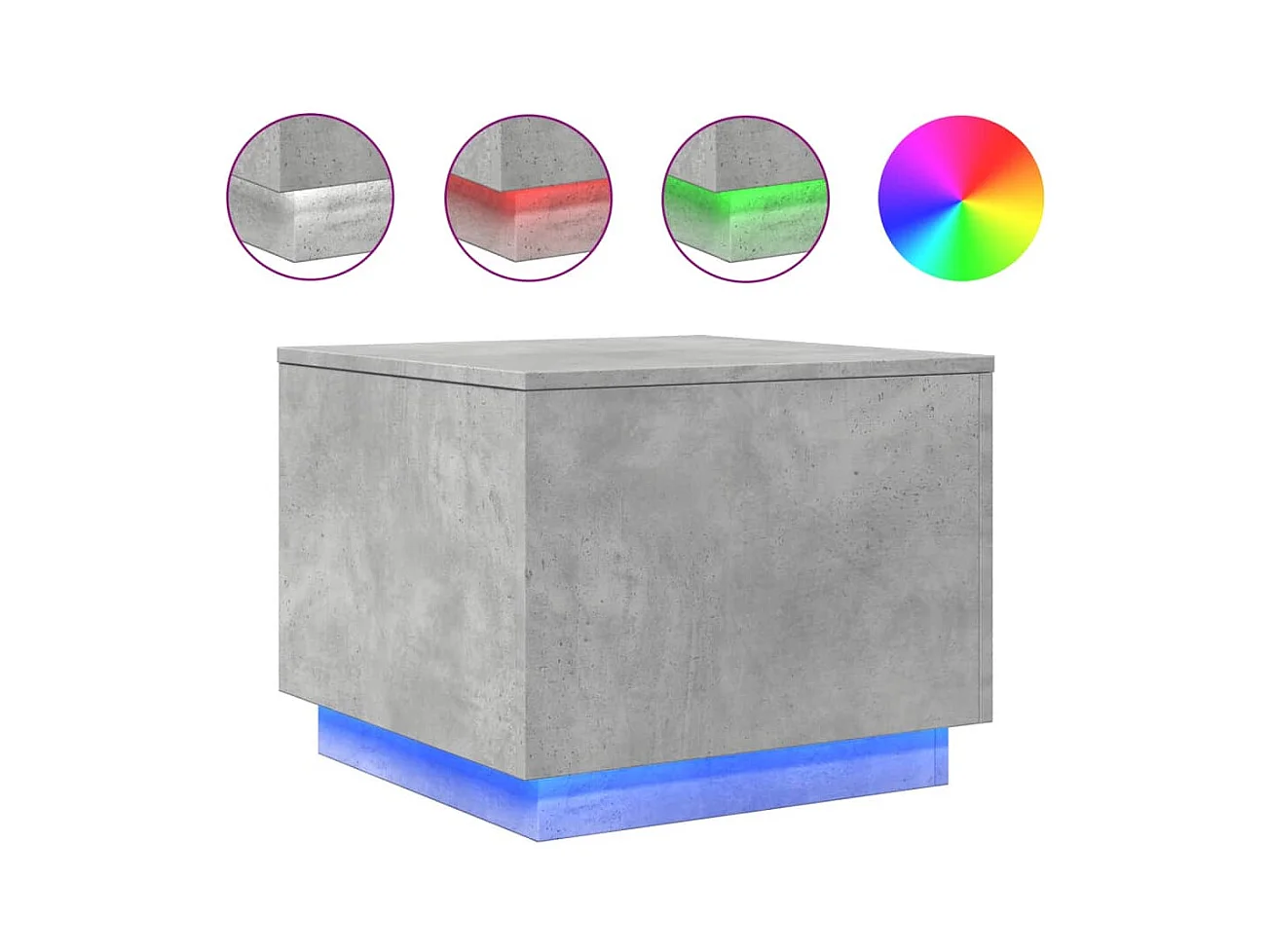 Table basse avec lumières LED gris béton 50x50x40 cm
