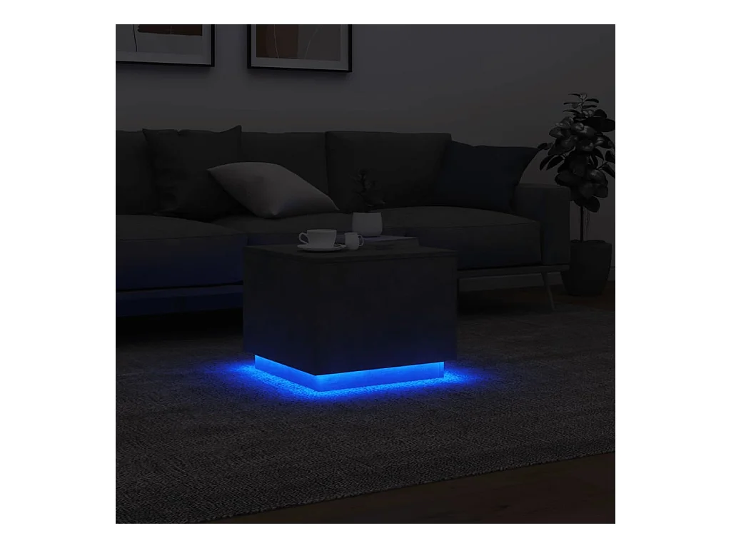 Table basse avec LED gris béton 70x50x45 cm bois d'ingénierie