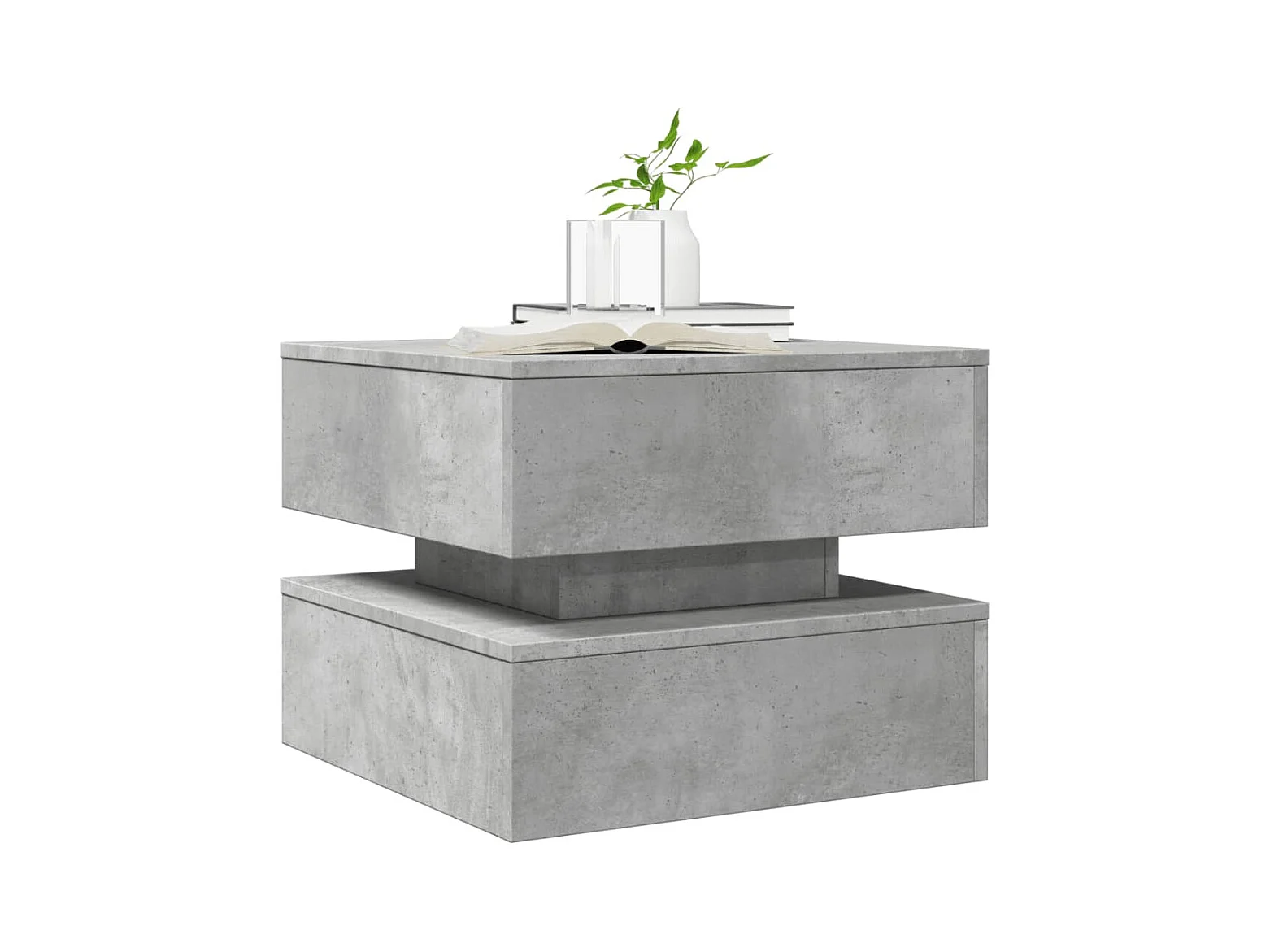 Table basse avec lumières LED gris béton 50x50x40 cm