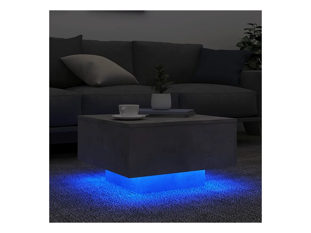 Table basse avec lumières LED gris béton 55x55x31 cm