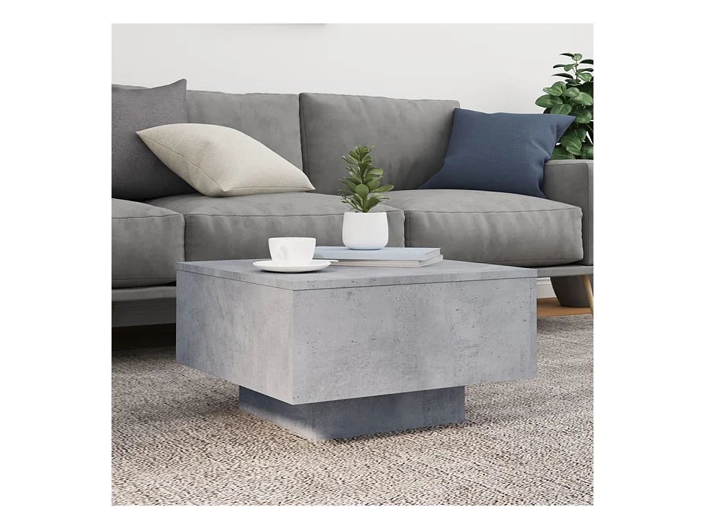 Table basse avec lumières LED gris béton 55x55x31 cm FR75844