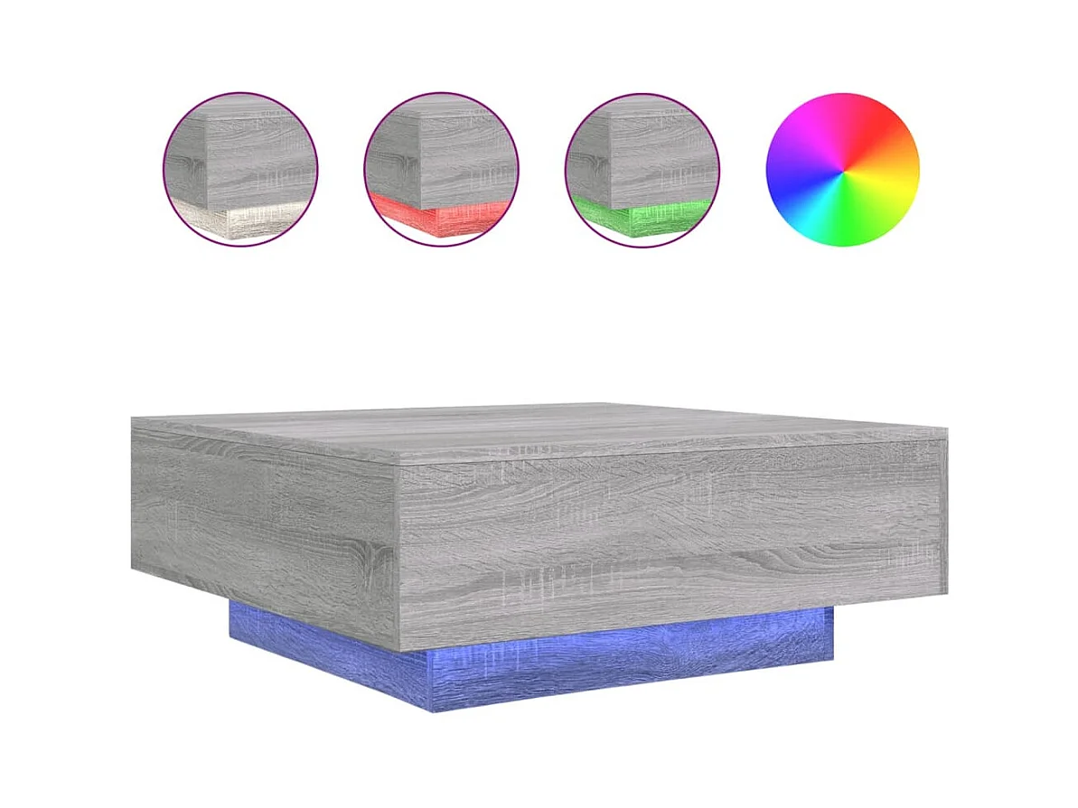 Table basse avec lumières LED sonoma gris 80x80x31 cm
