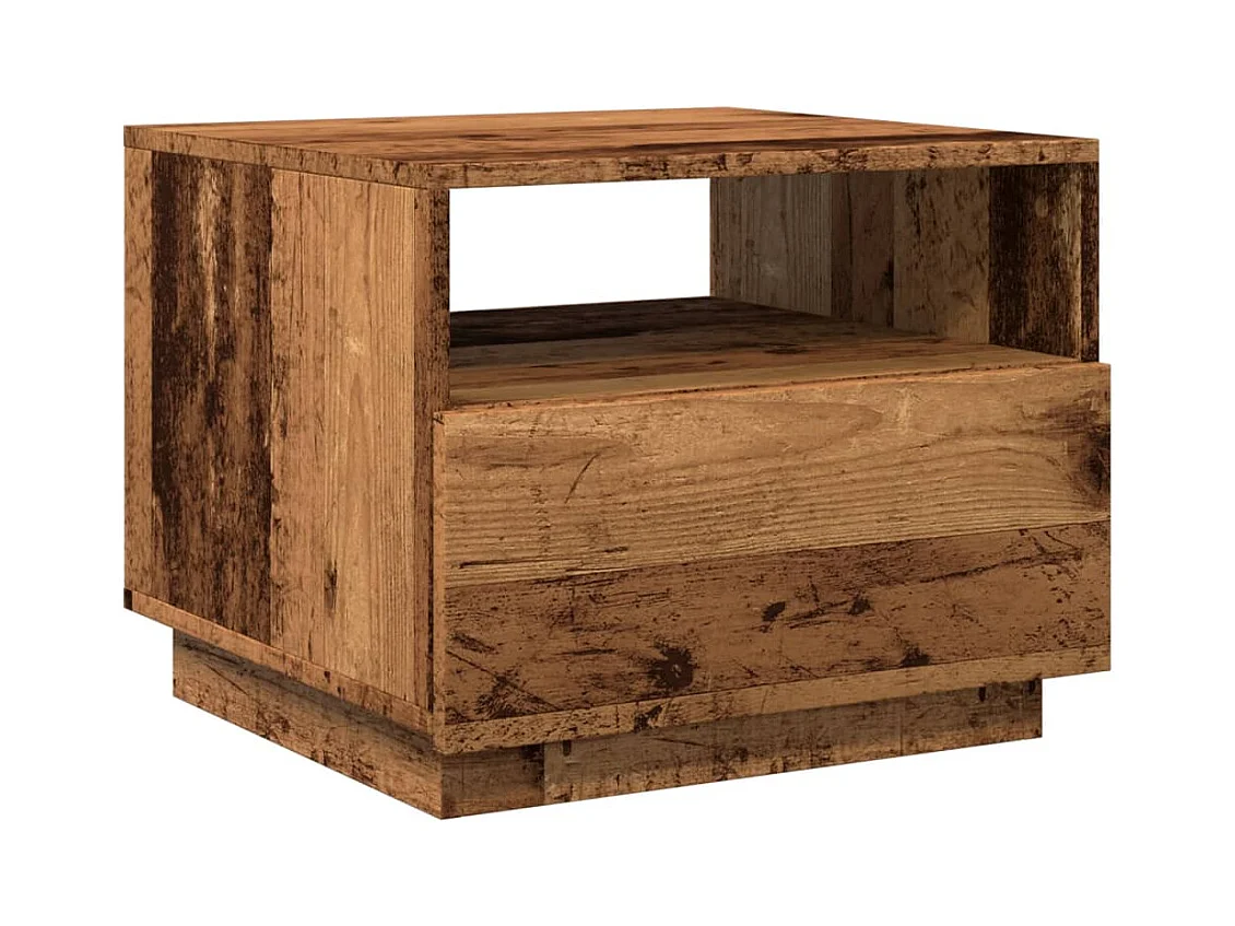 Table basse avec lumières LED vieux bois 50x50x40 cm