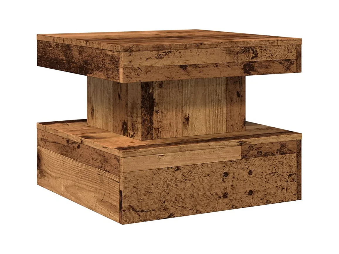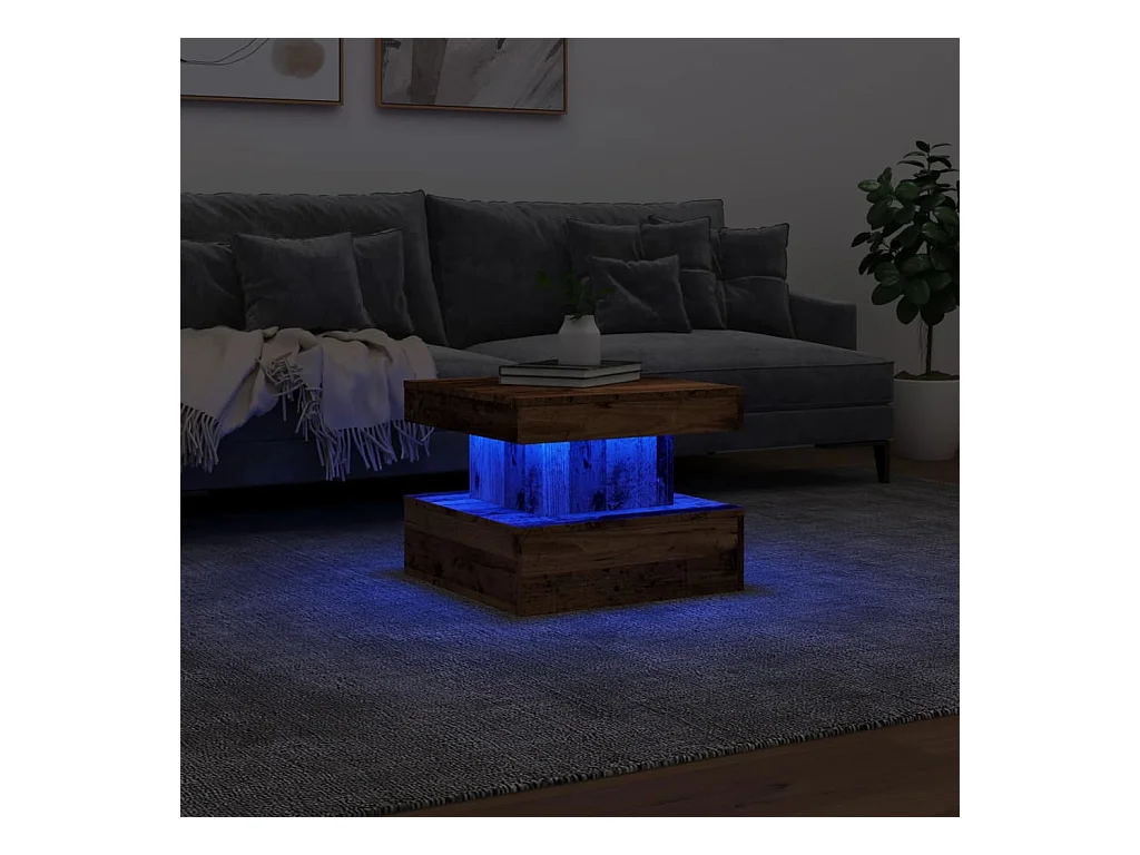 Table basse avec lumières LED vieux bois 50x50x40 cm