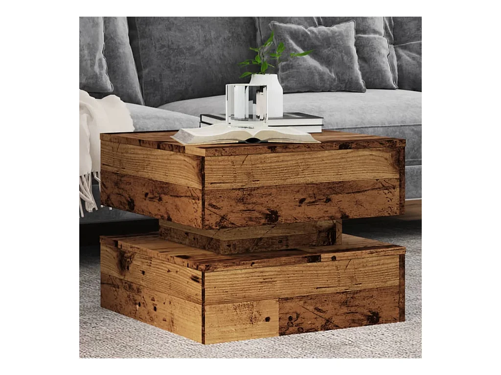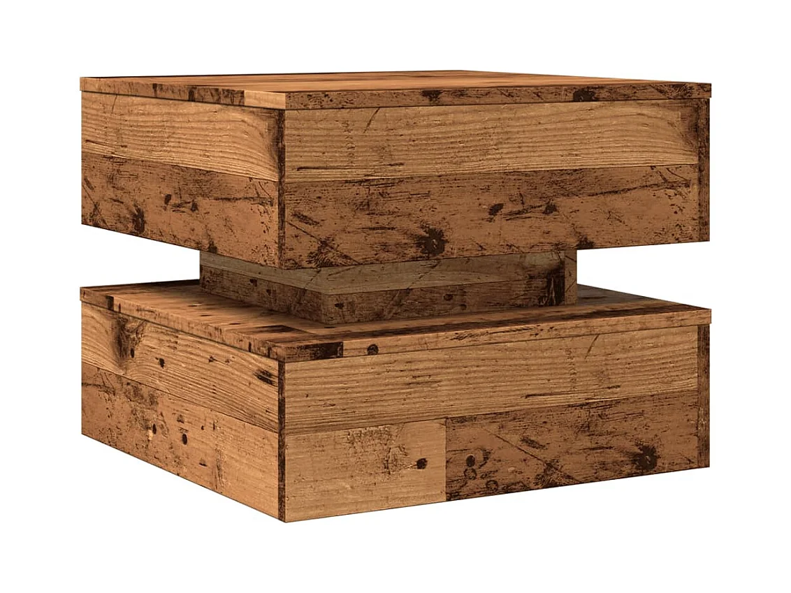 Table basse avec lumières LED vieux bois 50x50x40 cm