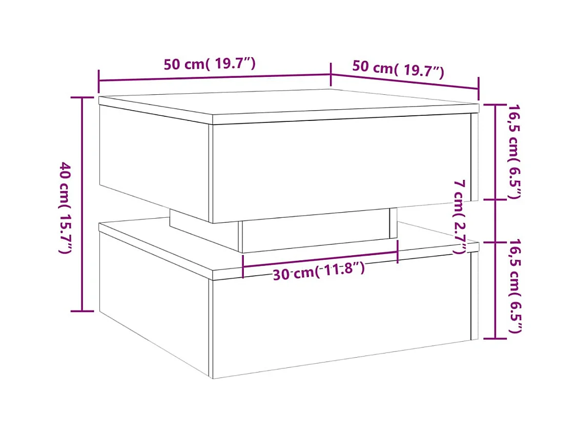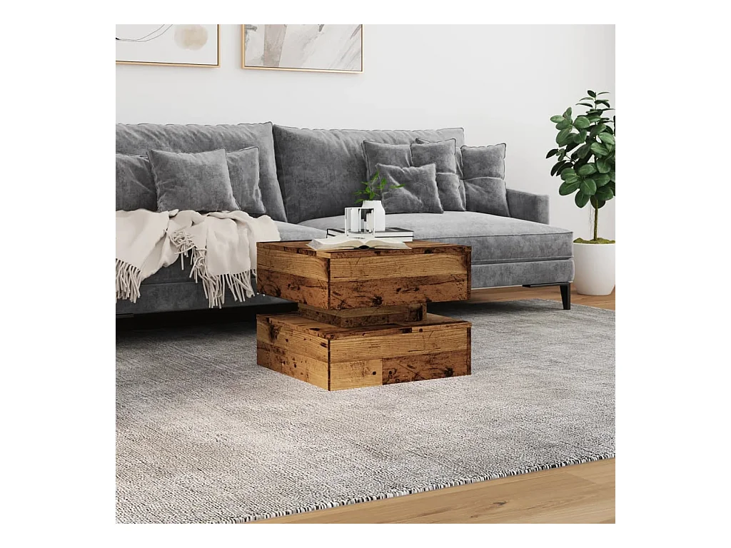 Table basse avec lumières LED vieux bois 50x50x40 cm