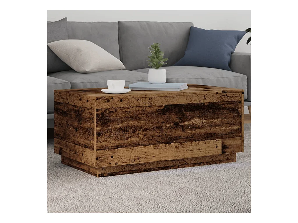 Table basse avec lumières LED vieux bois 90x50x40 cm