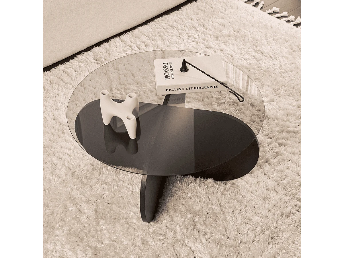 Table basse avec pieds croisés et plateau en verre trempé D75 cm - AERIS
