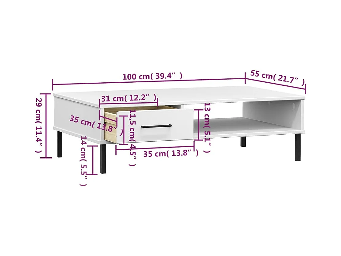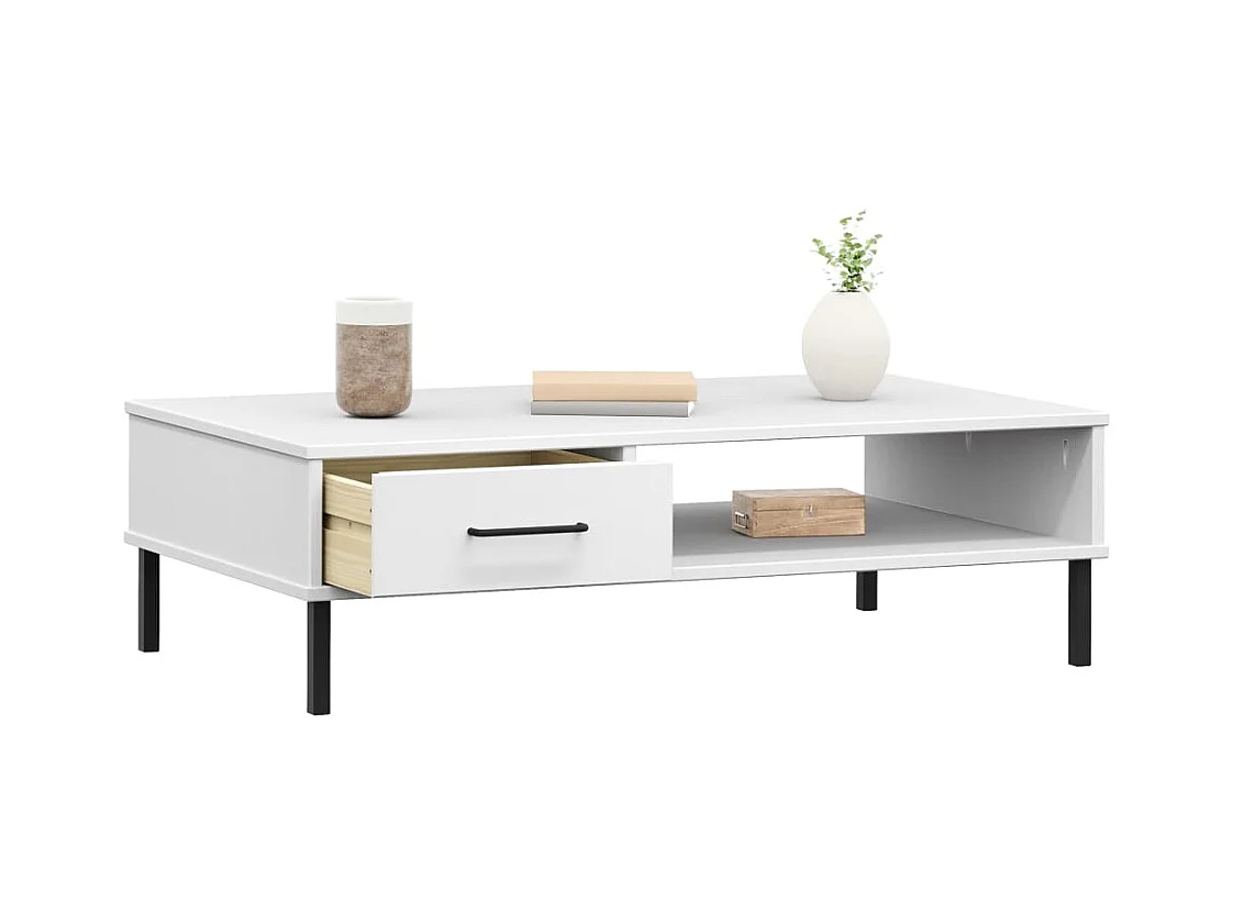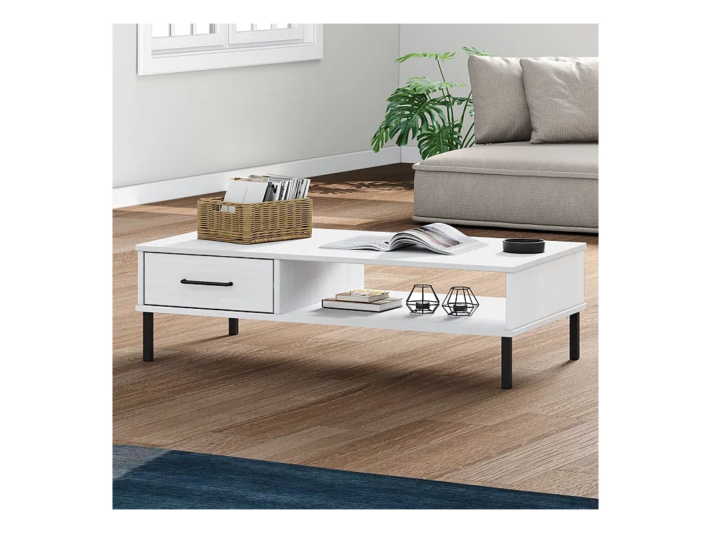 Table basse avec pieds en métal Blanc Bois pin massif OSLO