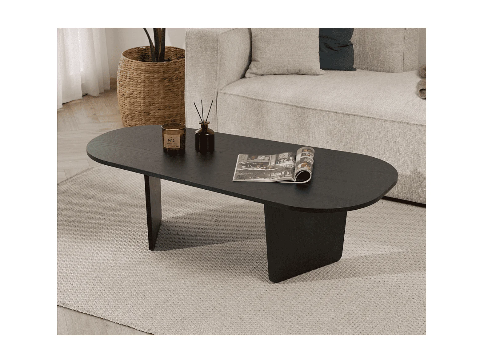 Table basse ovale collection MADEIRO noir.