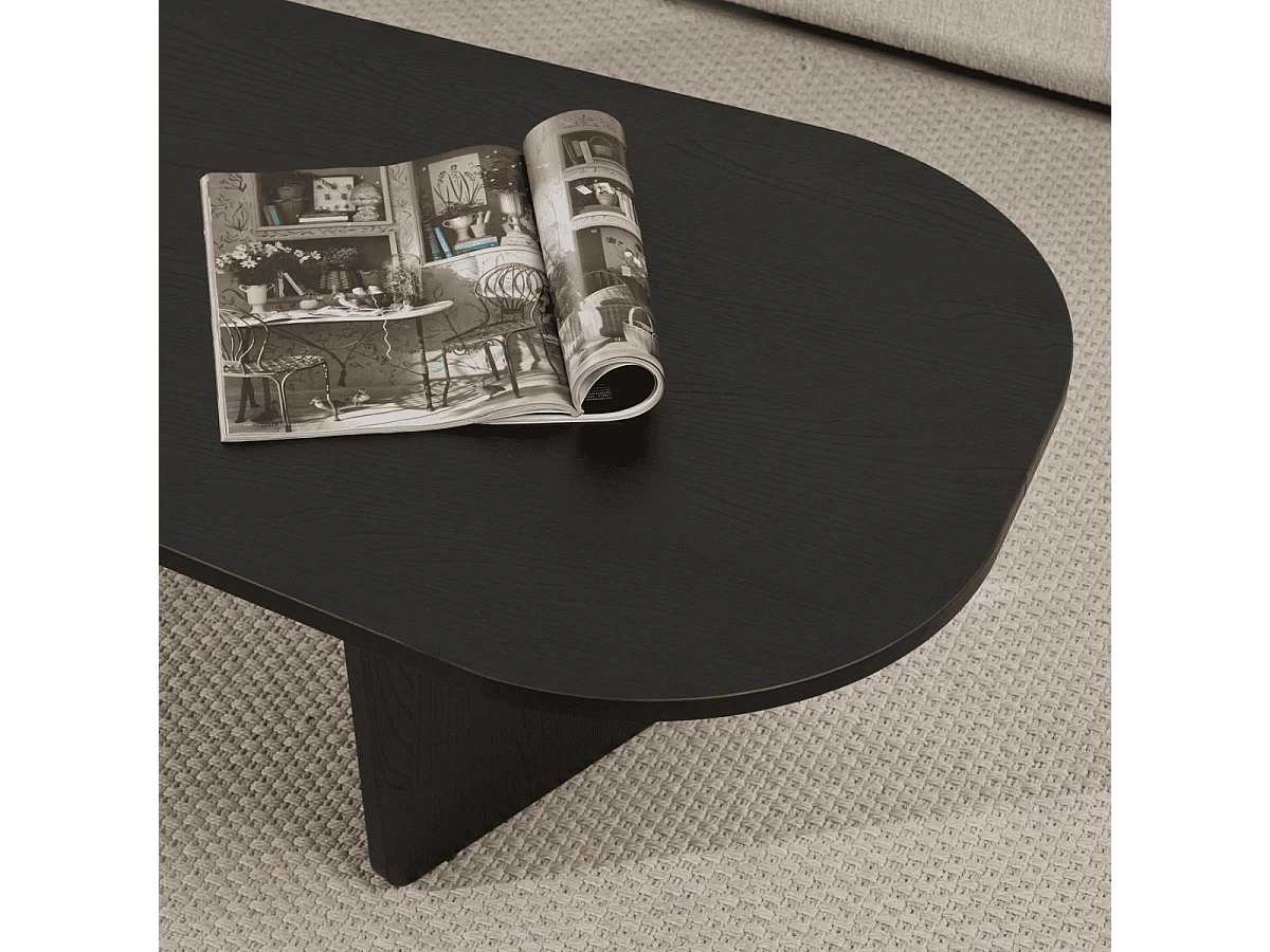 Table basse noire avec plateau ovale et pieds carrés, en MDF - pour salon et chambre