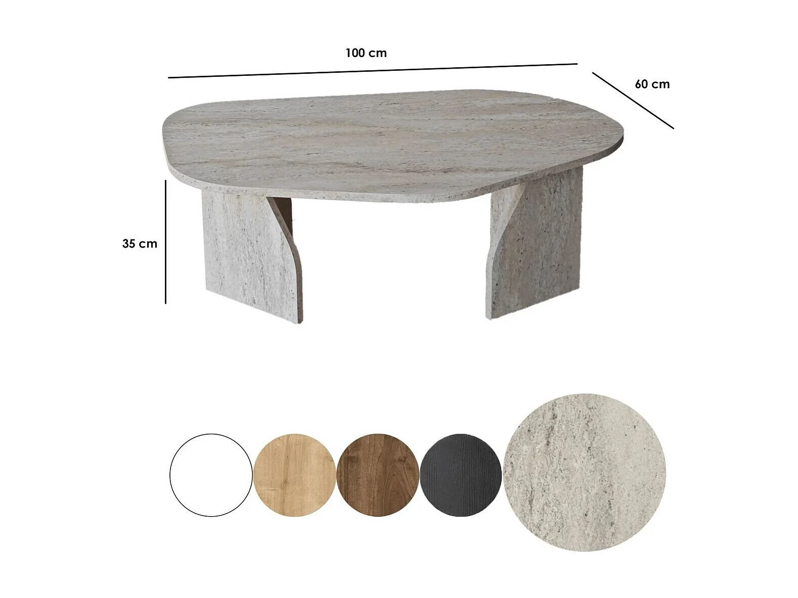 Table basse avec plateau de forme organique et pieds larges L100 cm - ROCK