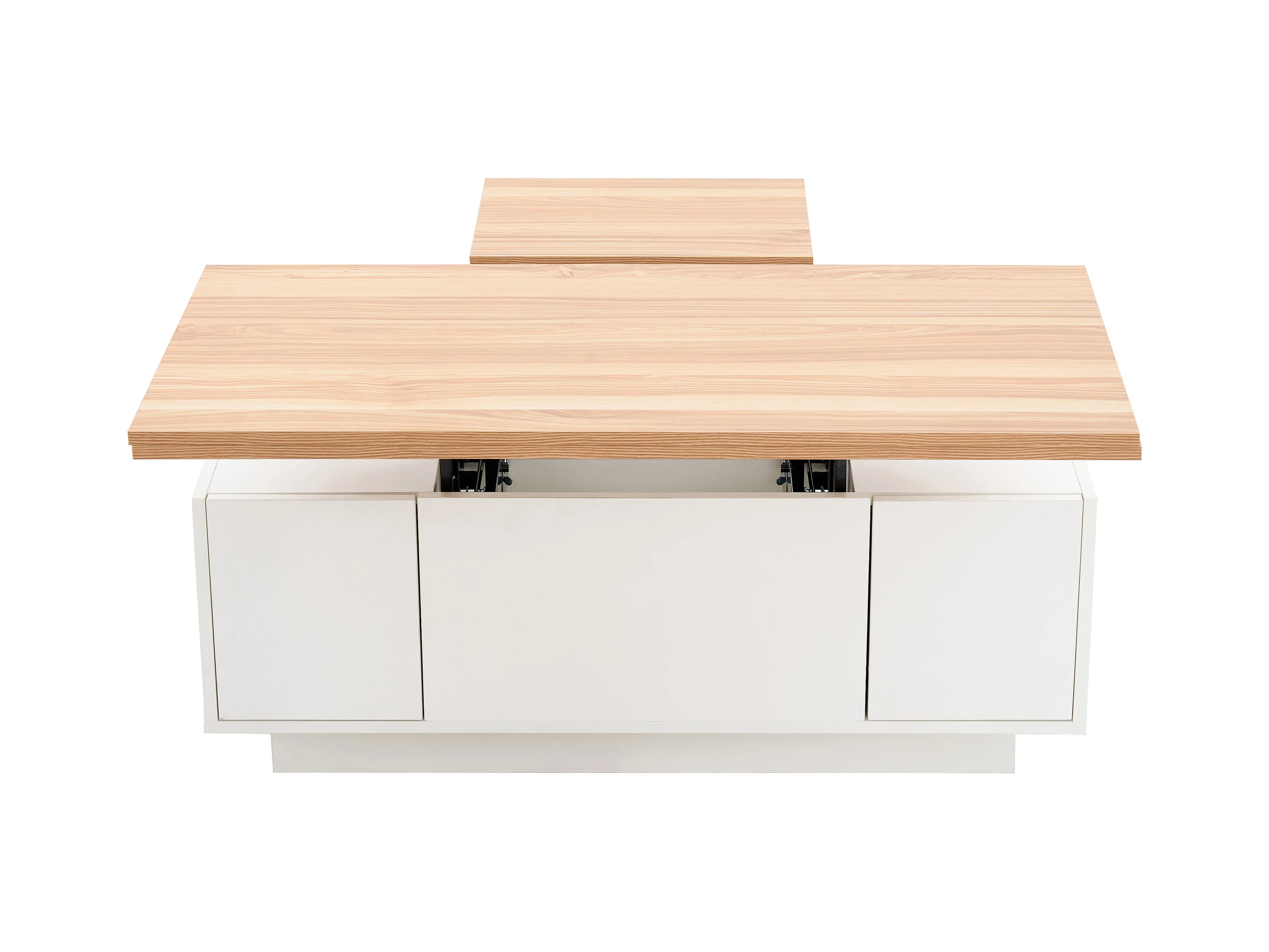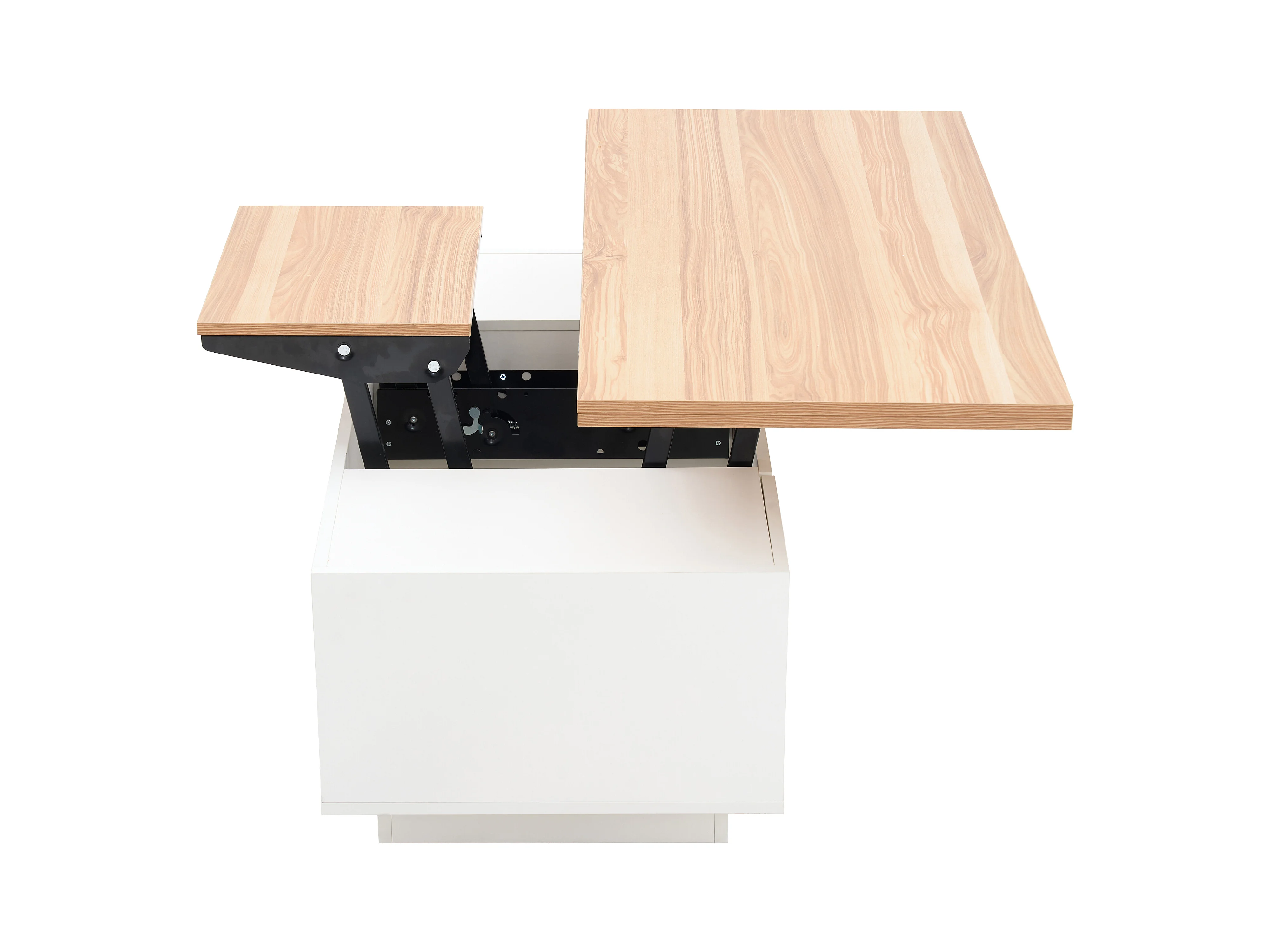 Table basse avec plateau en bois relevable double - Table basse à 2 portes - rangement dissimulé - blanc