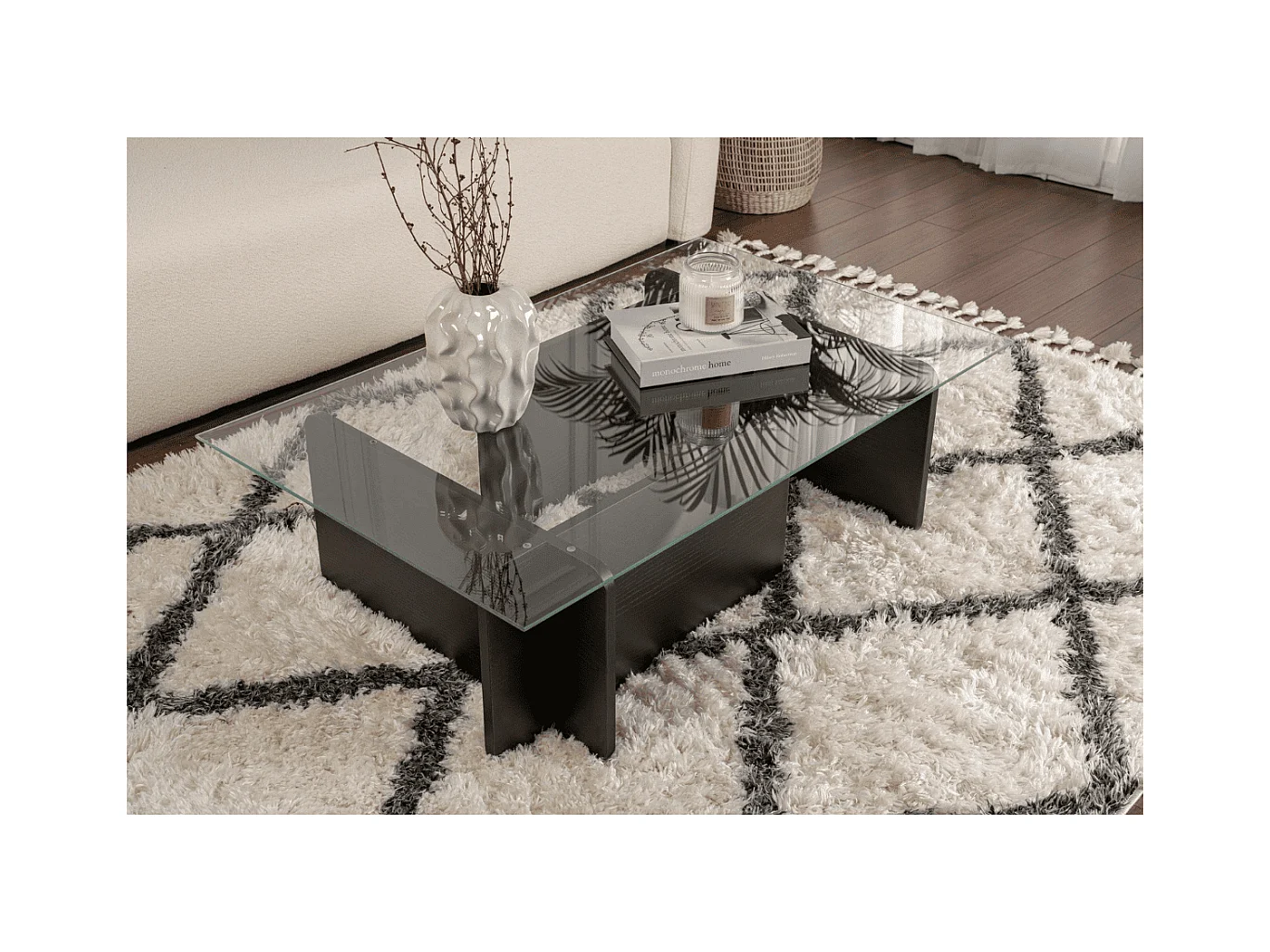 Table basse avec plateau en verre trempé L105 cm - FLAVIO