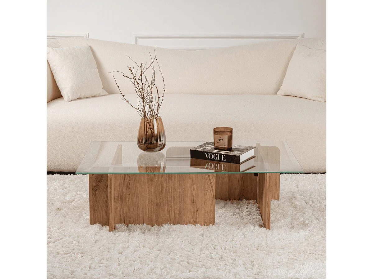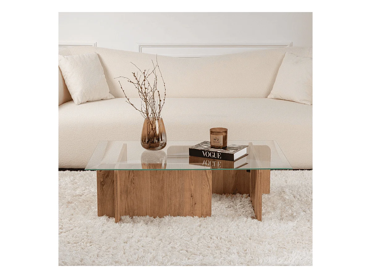 Table basse avec plateau en verre trempé L105 cm - FLAVIO