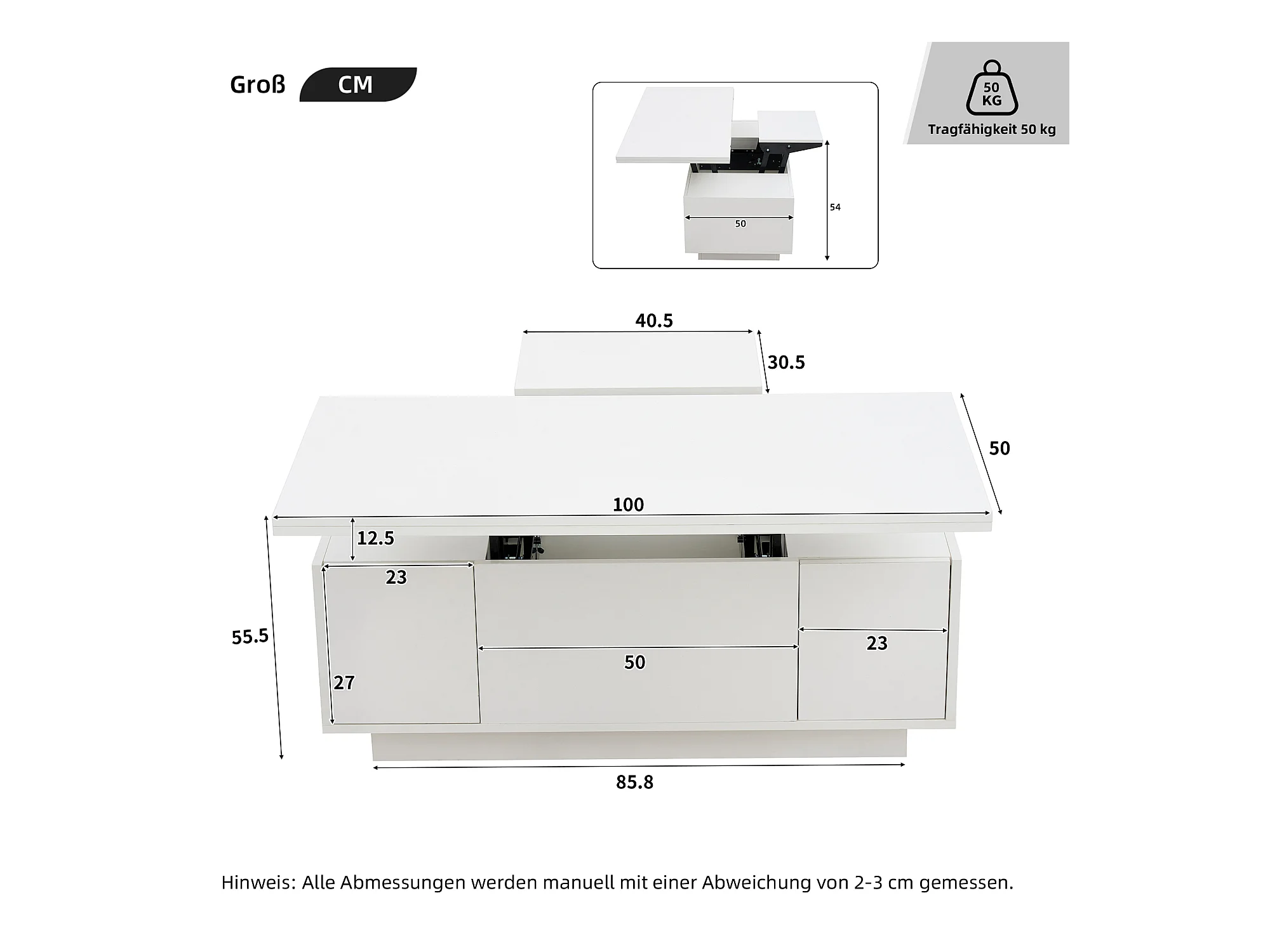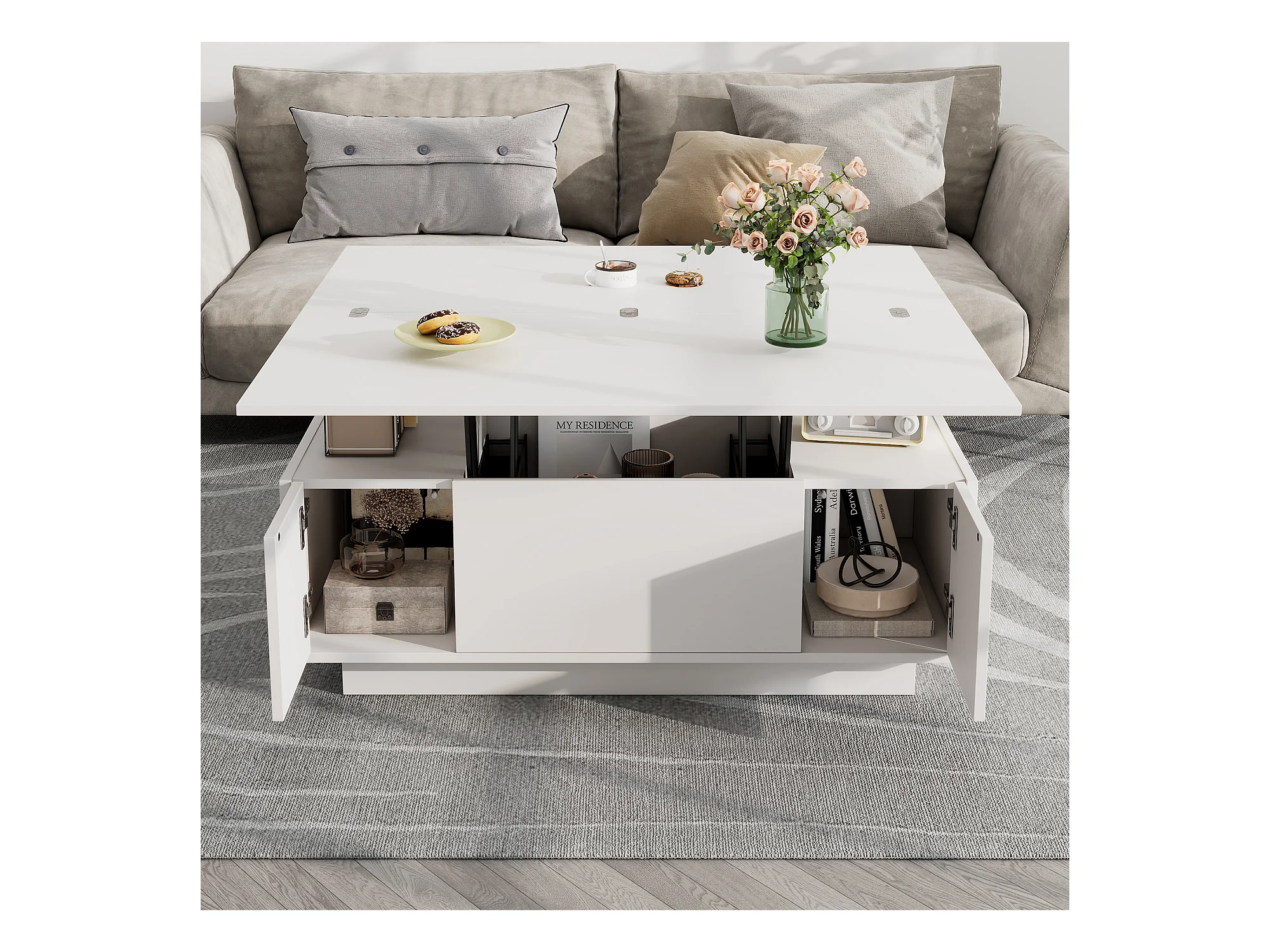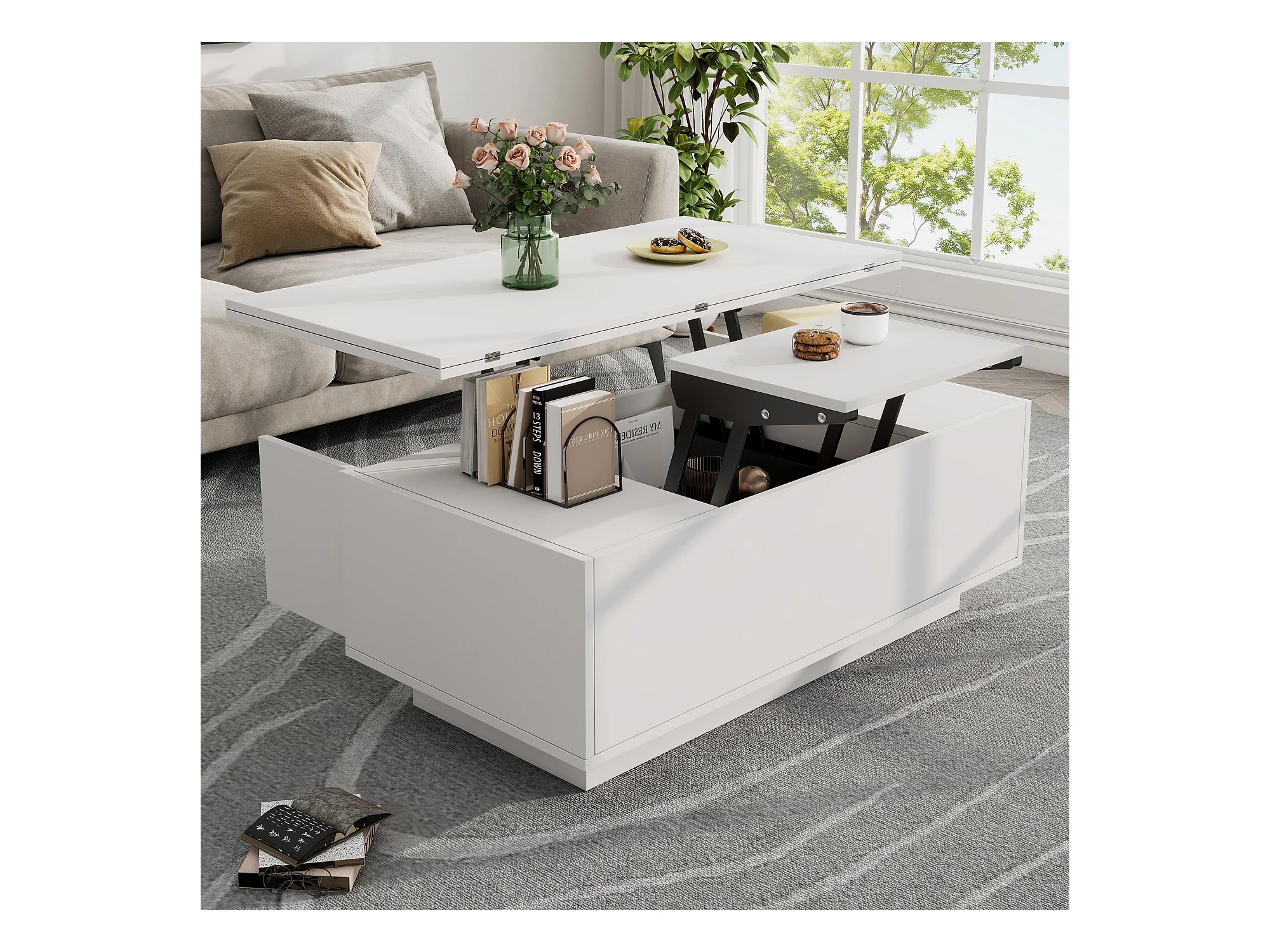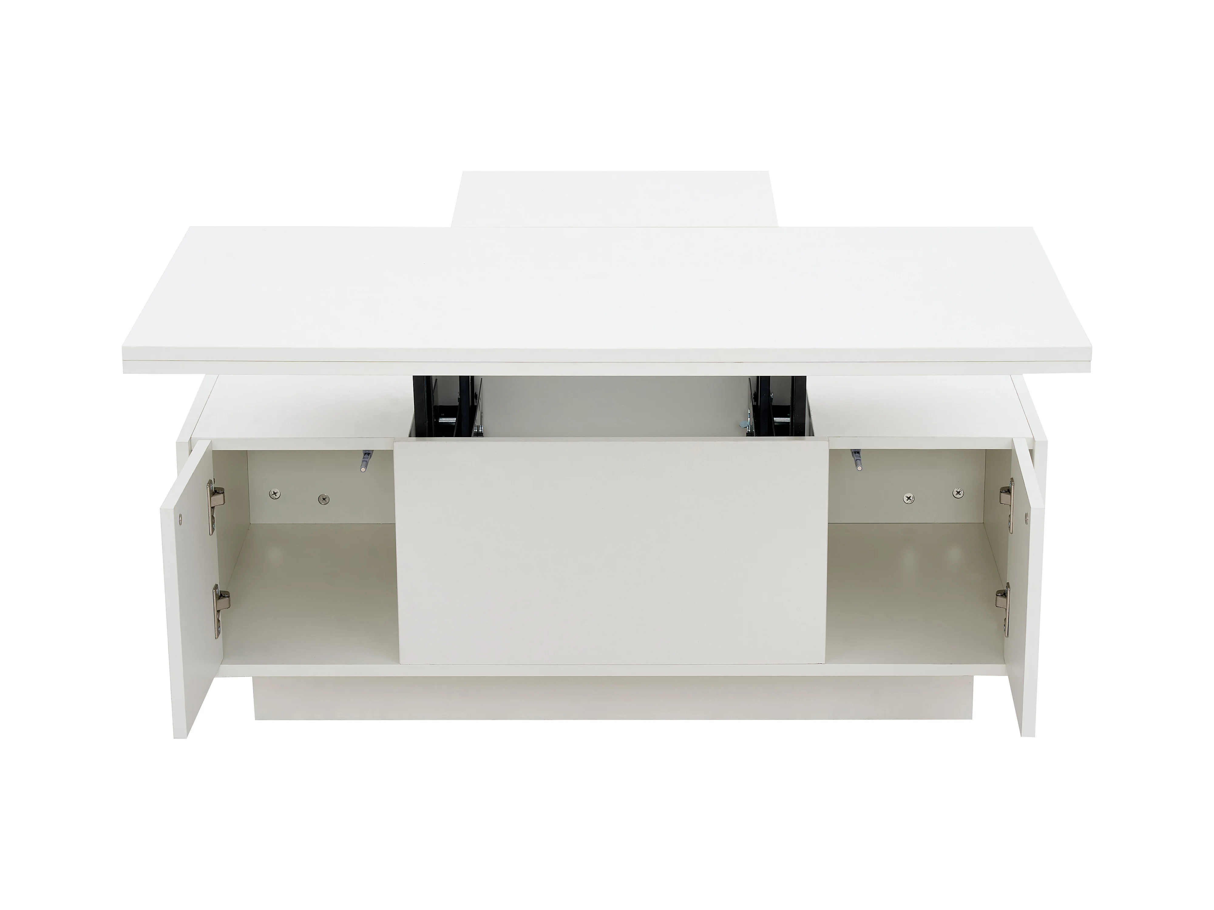 Table basse avec plateau relevable double - Table basse à 2 portes - rangement dissimulé - blanc