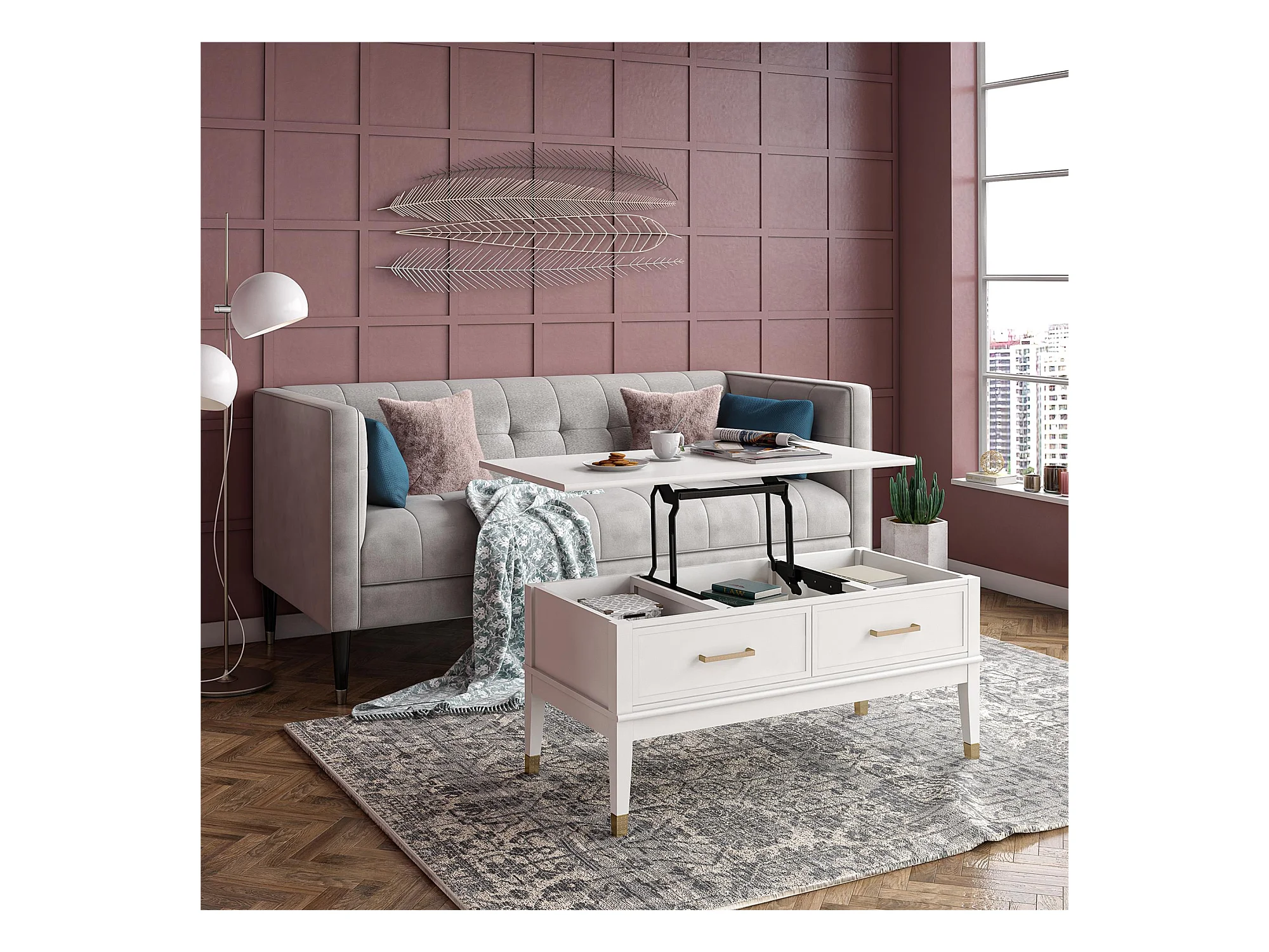 Westerleigh | Table basse avec plateau relevable et 2 tiroirs en panneaux de partic.