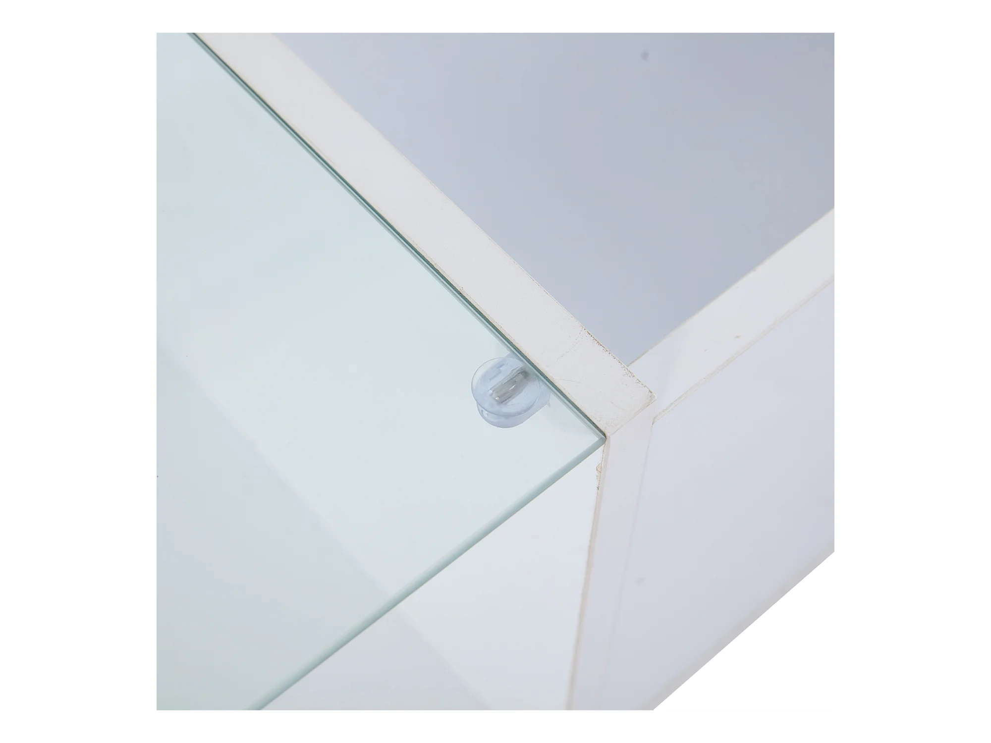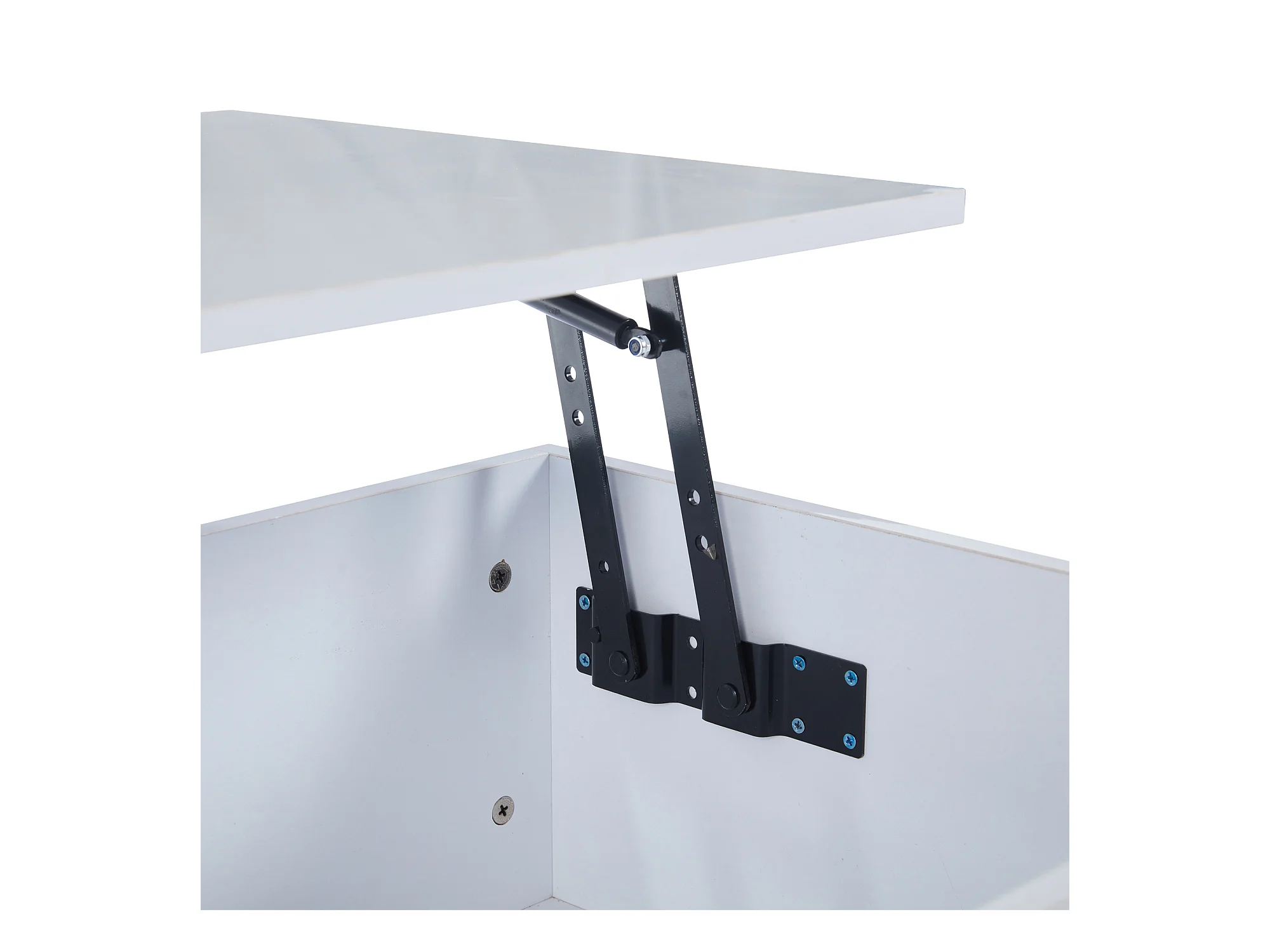 Table basse avec plateau relevable et LED, Rangement intégré, en blanc laqué brillant