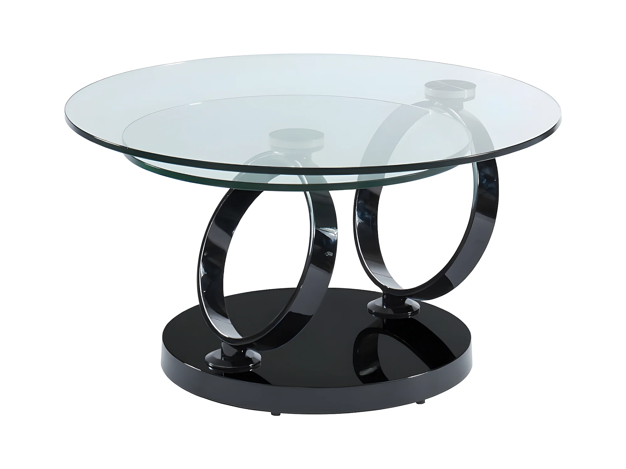 Table basse avec plateaux pivotants JOLINE - Verre trempé transparent et pied chromé noir de Maison Céphy