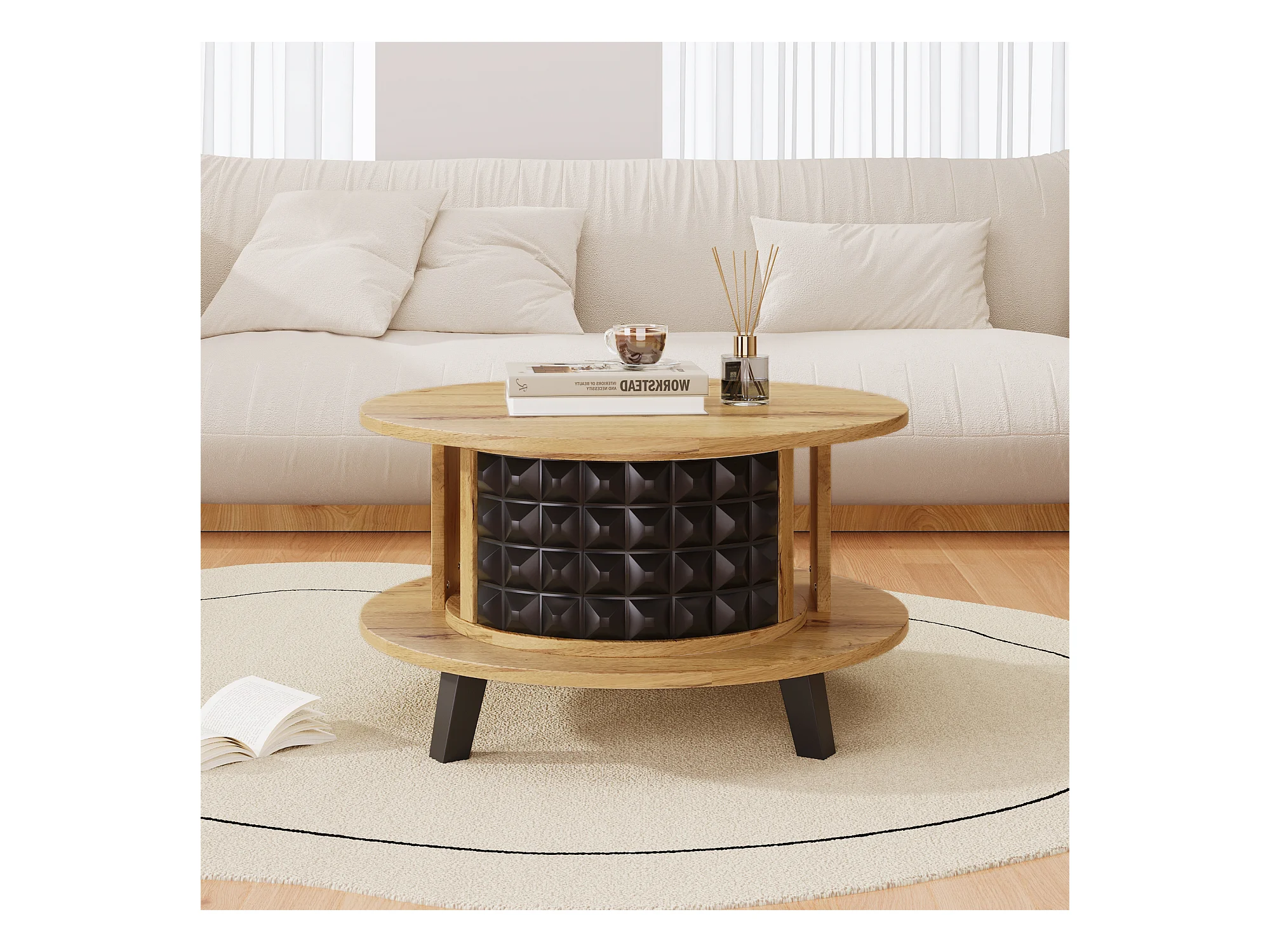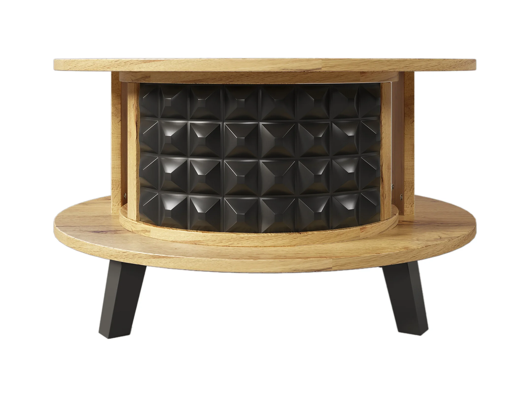 Table basse - avec rangement intérieur pivotant - Naturel & Noir
