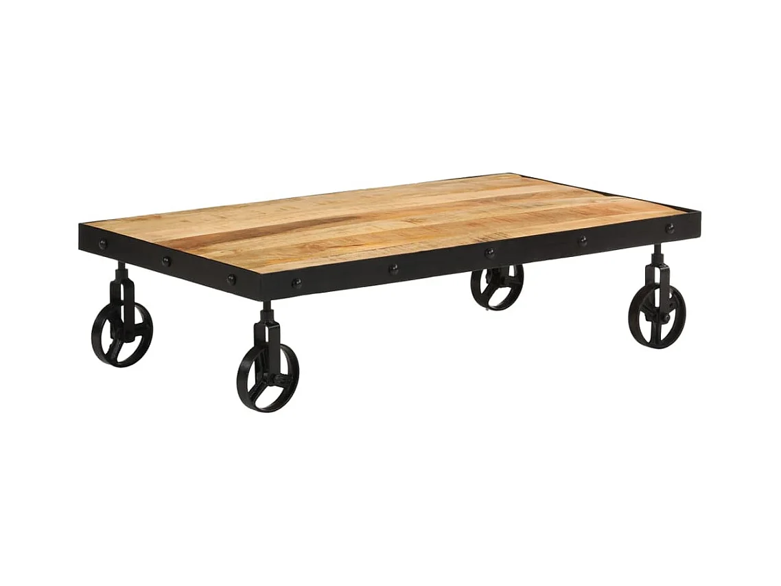 Table basse avec roulettes bois de manguier massif 100x55x26 cm